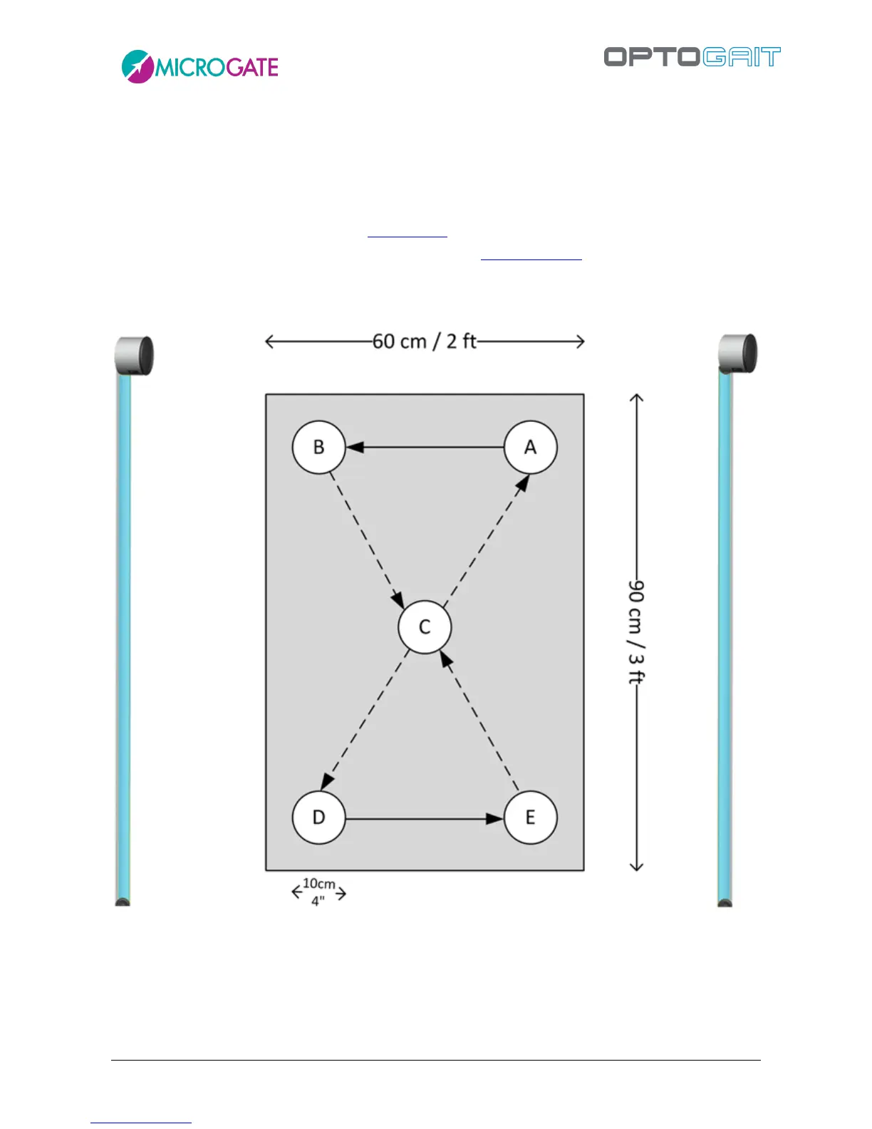 Place the two OptoJump Next bars outside the longer side of the rectangle with the drum at the test