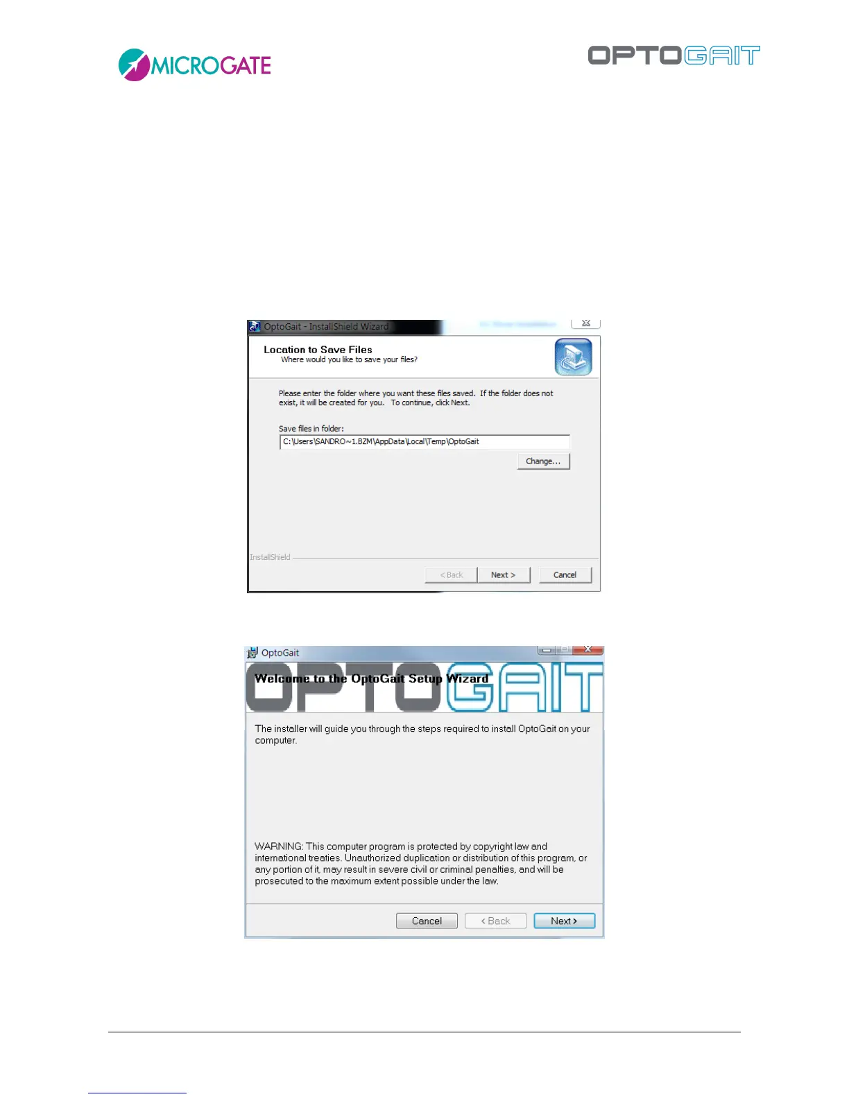 Start the OptoGait.exe. setup program in the usual way for Windows.