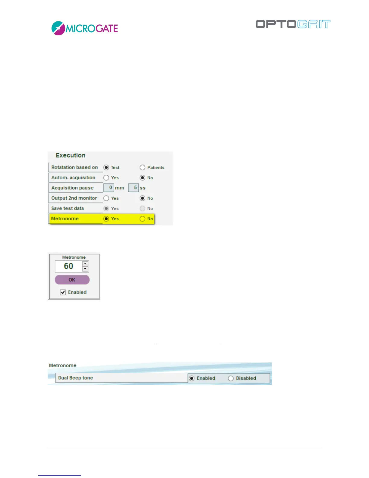 To activate the metronome during a test, go to Test > Execute > Configuration and select the YES