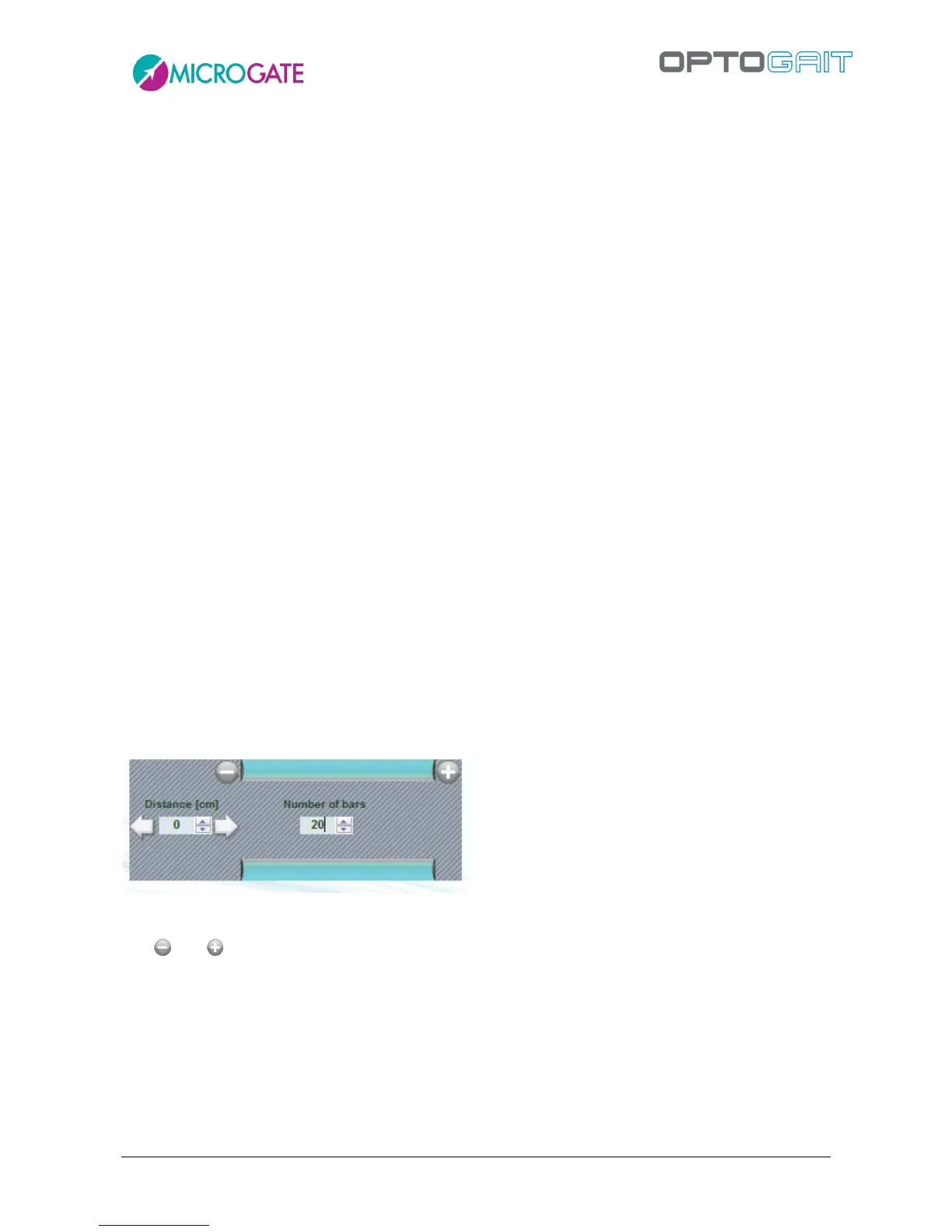 The and buttons are respectively for removing or adding blocks of OptoGait bars. This function