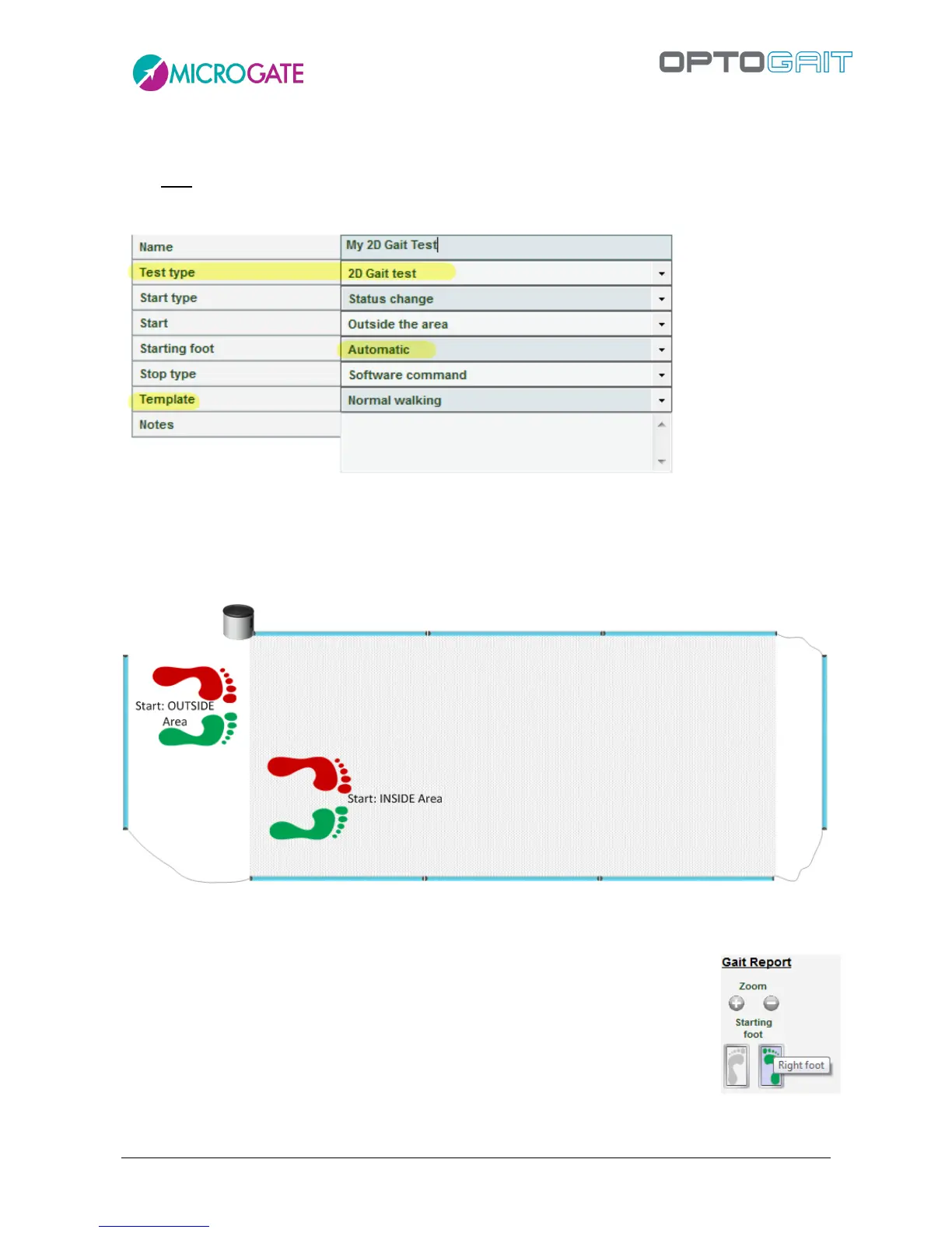 A new test type called '2D Gait Test' has been added from version 1.7 or higher. With this new type