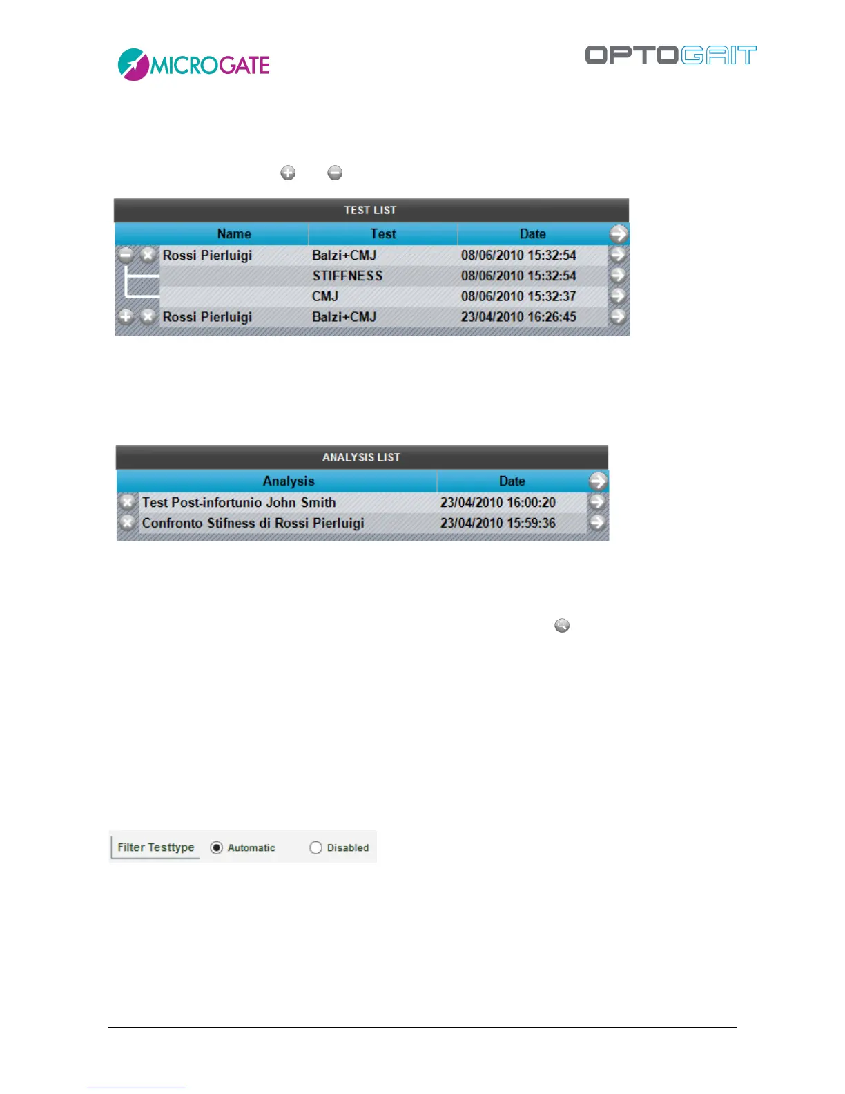 (e.g., key in ‘Rossi’ in the Patient field or ‘CMJ’ in the Test field) or press to display a list of patients