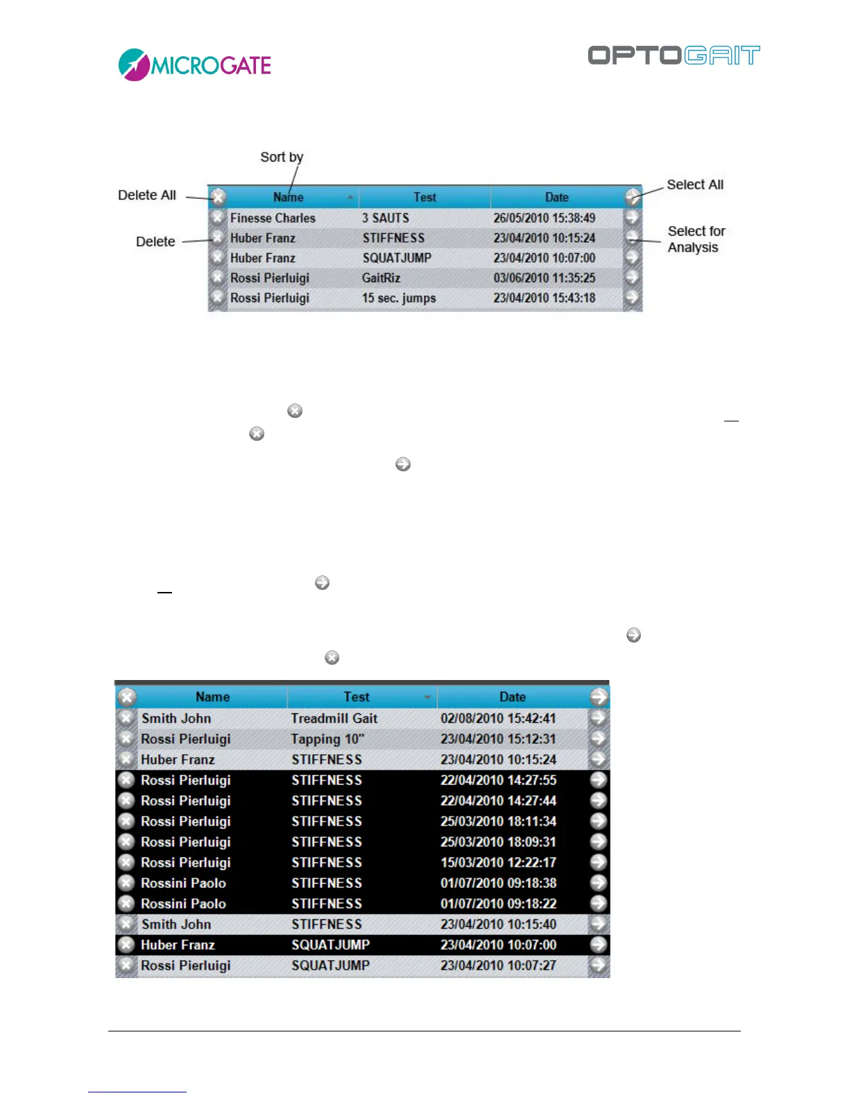 automatically be set on the type of test (e.g., if a ‘Squatjump’ test is chosen, the Test List is filtered