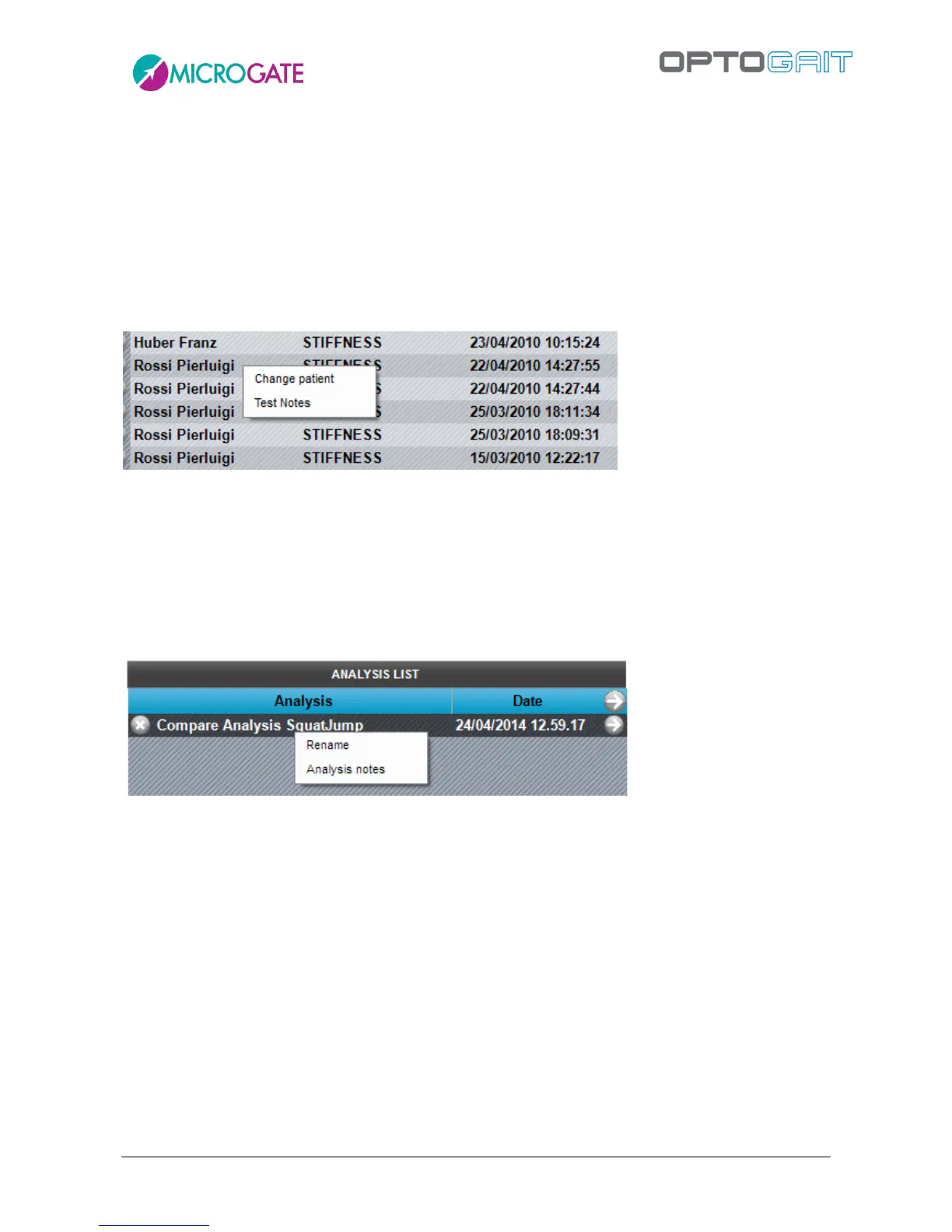 From the test list, it is possible to perform two operations by RIGHT-CLICKING on one test line. More