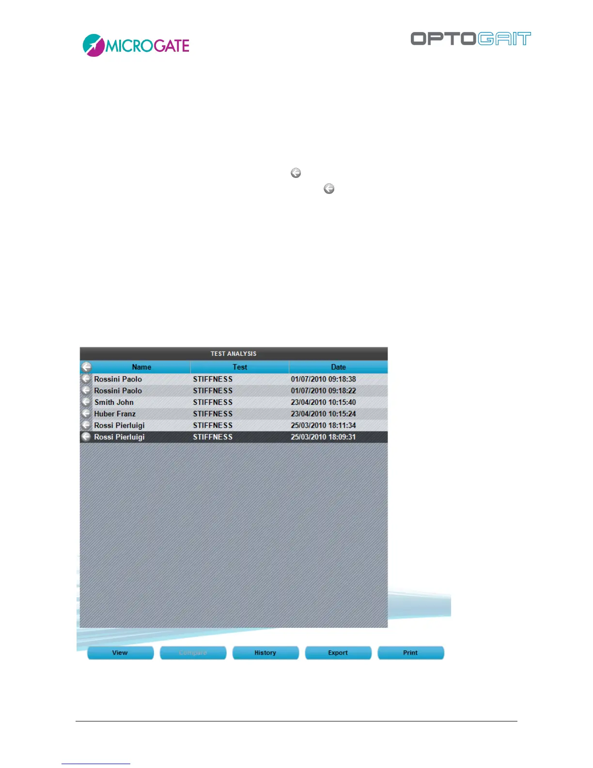To analyse the history, insert two or more tests in the ‘TEST ANALYSIS’ table and press the button