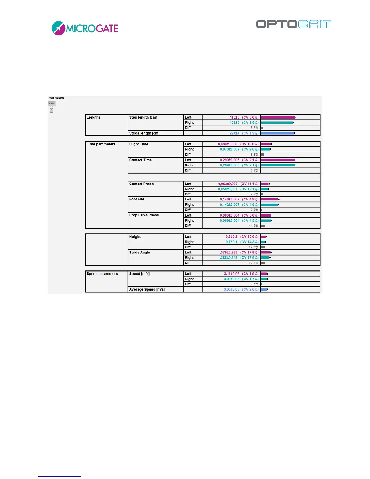dynamic report (Run Report) focusing on the asymmetry between the right and the left foot. Of