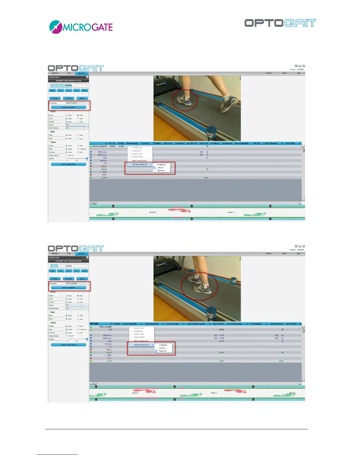 Figure 76 - Treadmill Running Test: assigning the starting foot