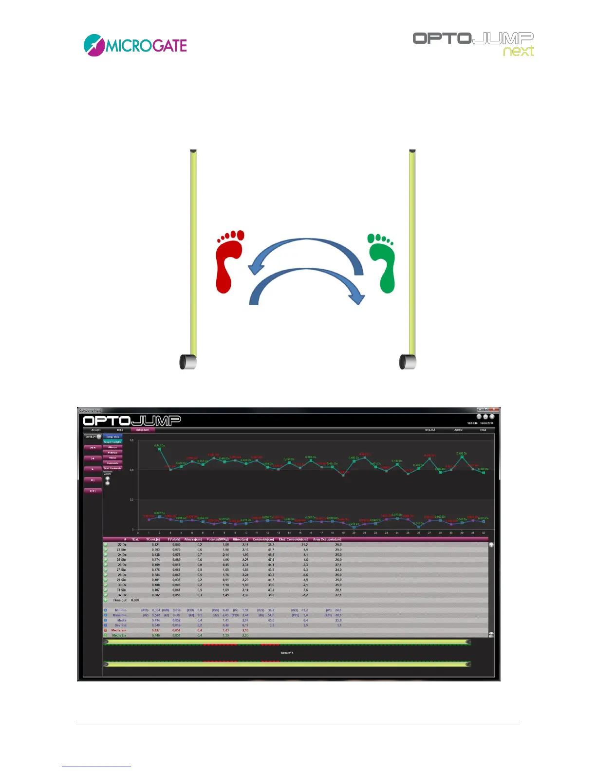 the other (usually for 15 seconds). The main objective is to compare the contact and flight times, as