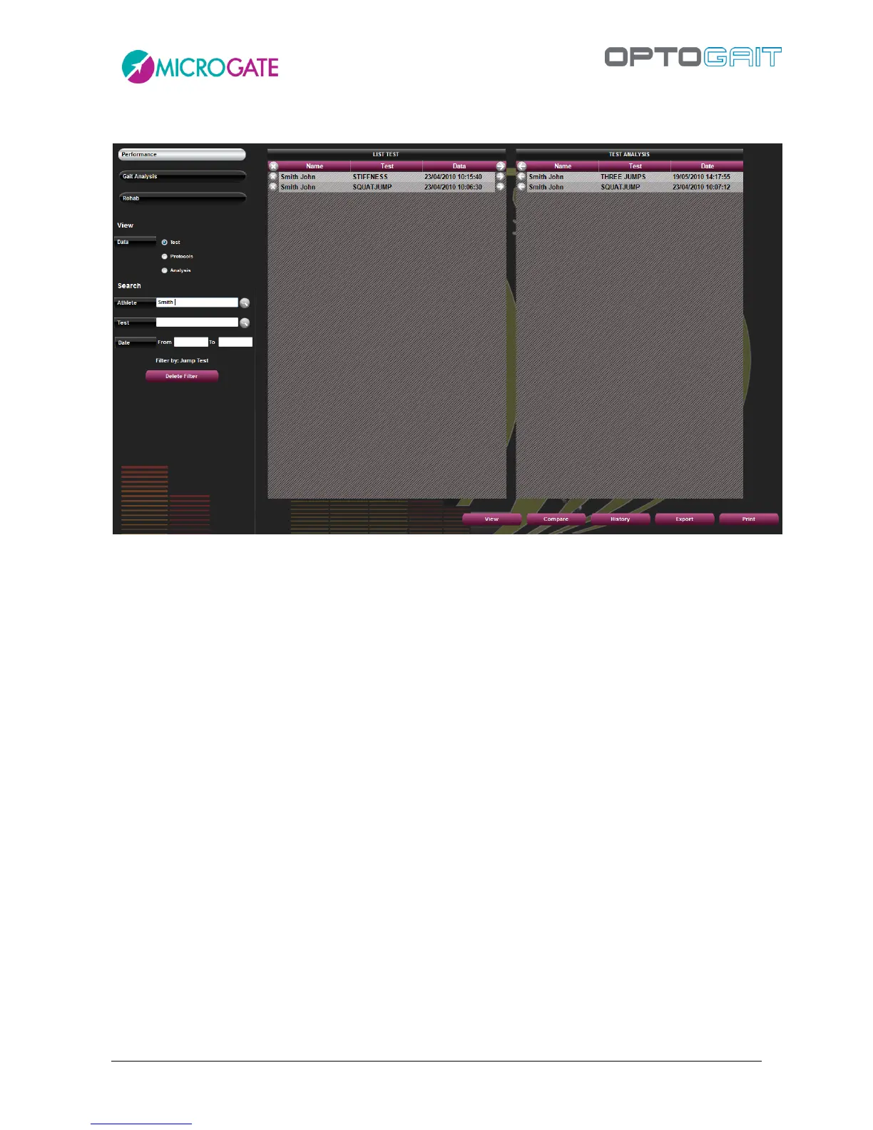 TEST LIST: contains all the tests made, possibly filtered by your parameters; the same