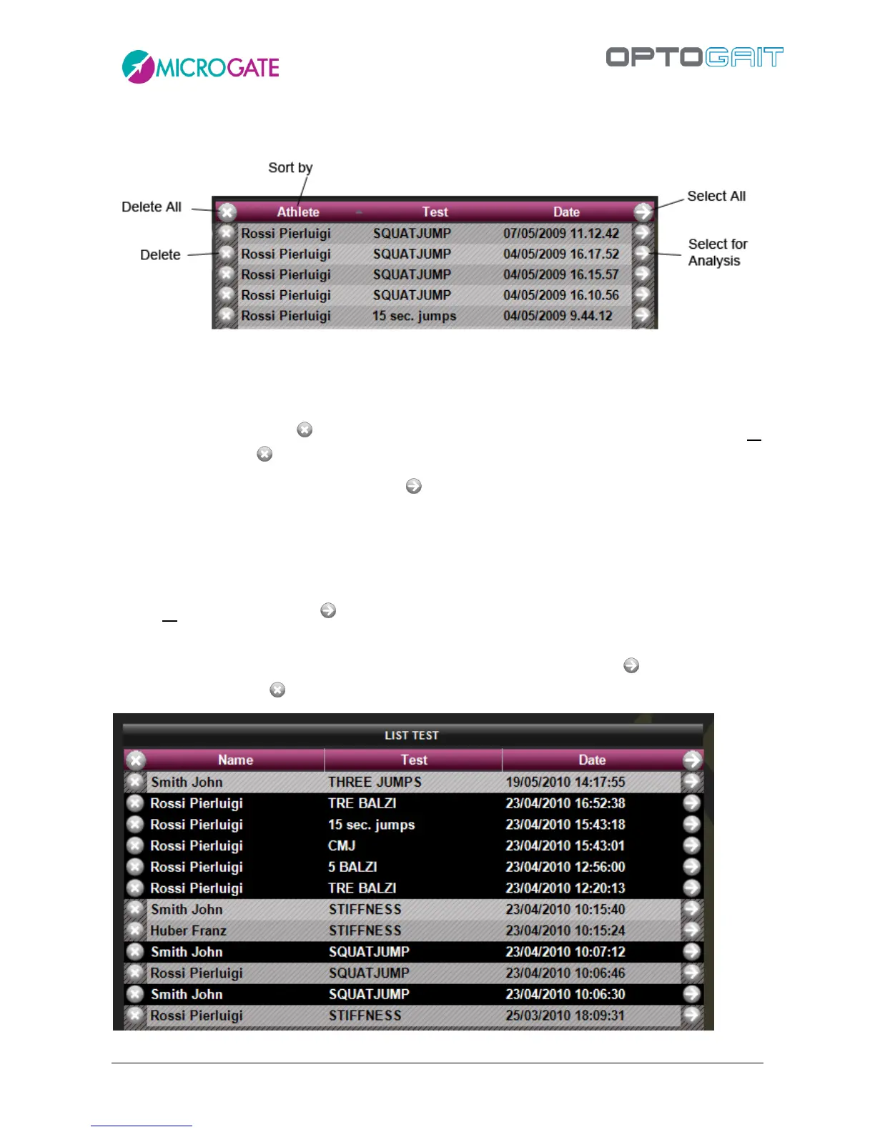 automatically be set on the type of test (e.g. if a ‘Squat Jump’ test is chosen, the Test List is filtered