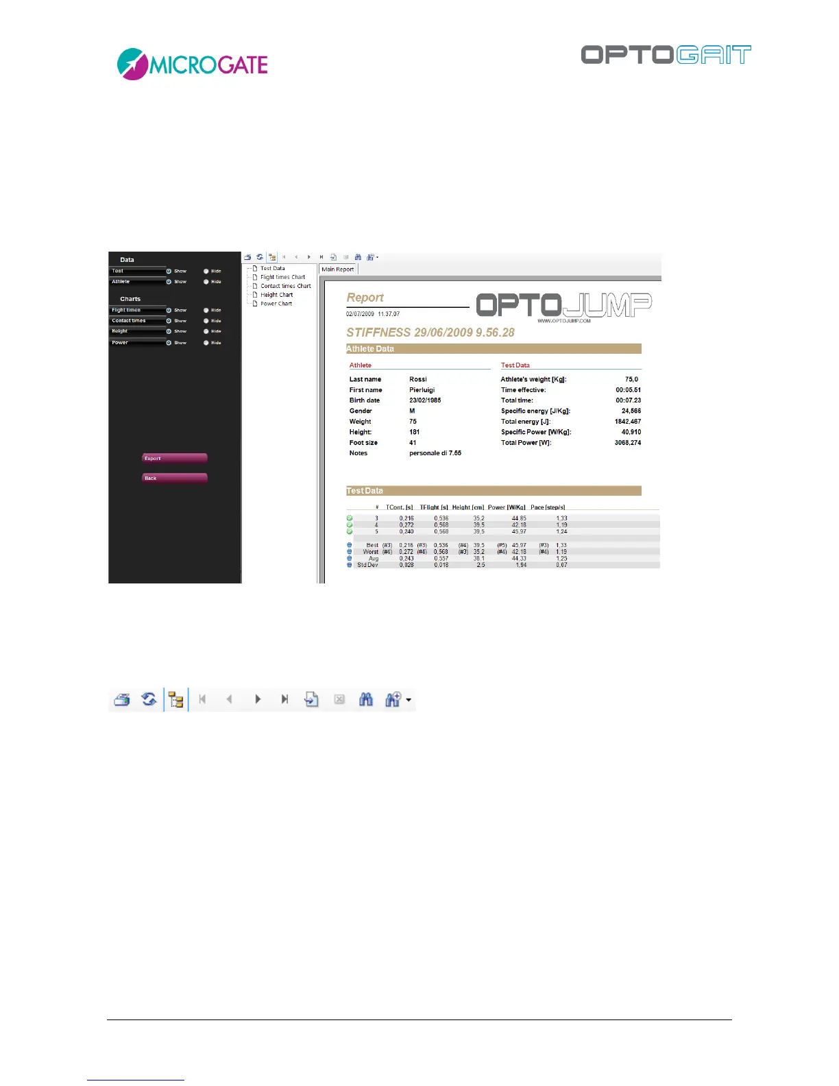 When <Print> is pressed, a multi-page report is printed with the athlete’s data, summarizing