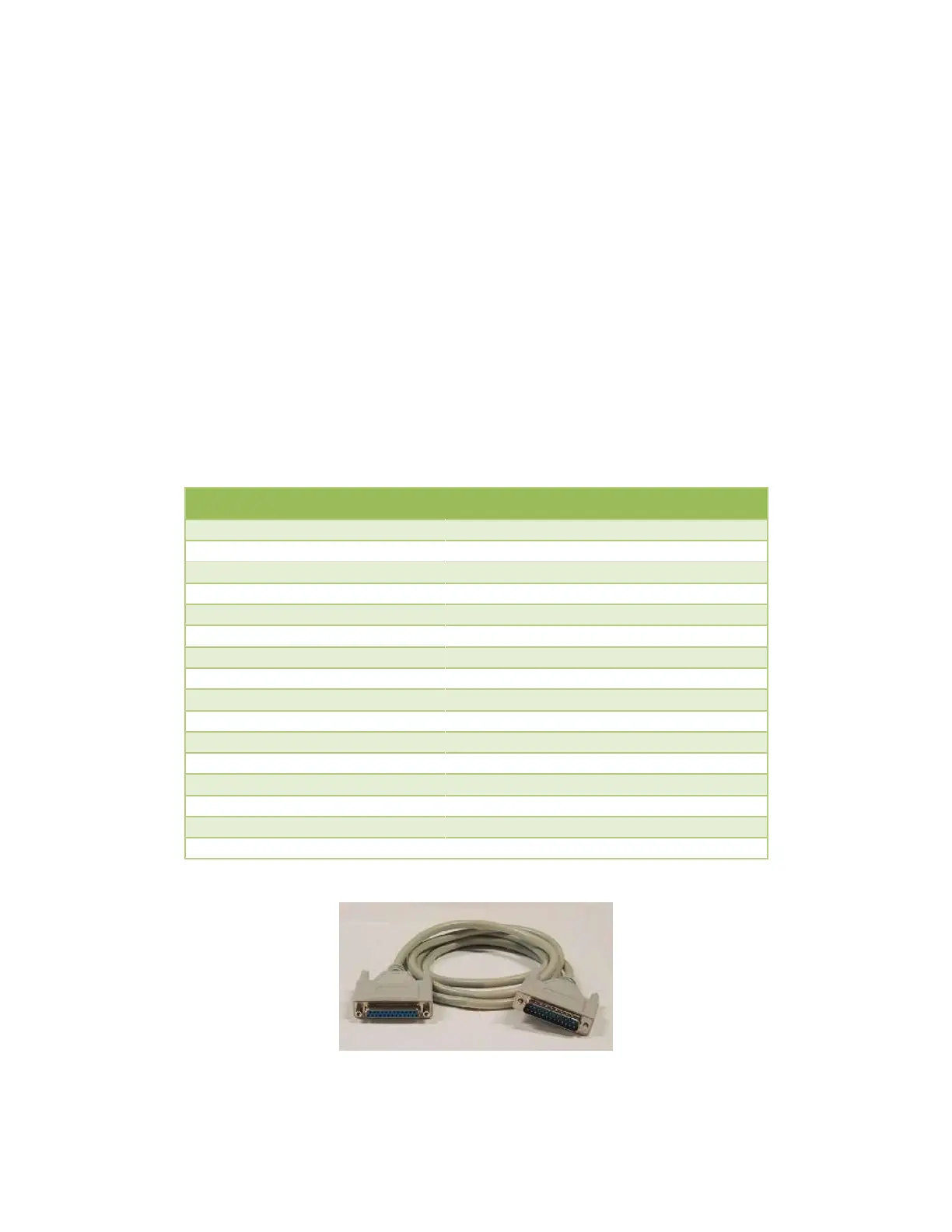 follows this standard when the software selects RS-232. Use any straight through 25 conductor DB-25M