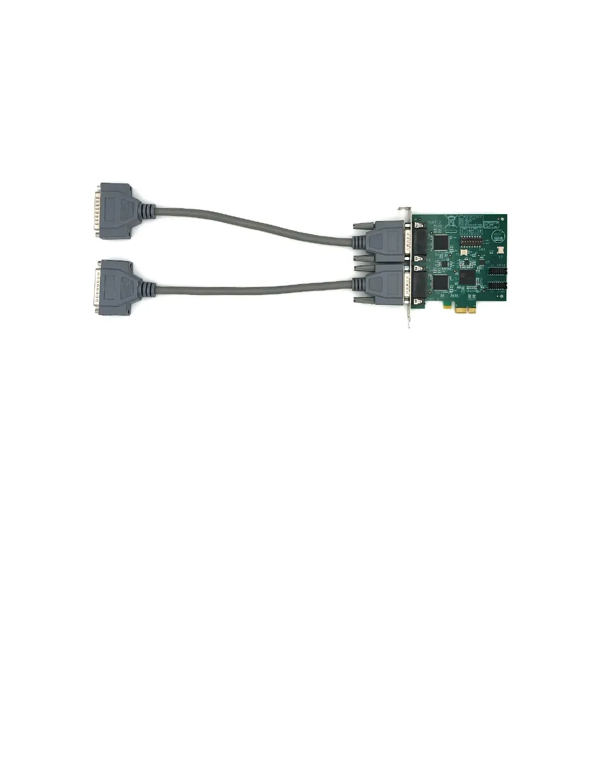 The card has two high density 26-pin connectors, one for each port. Adapter cables are included with