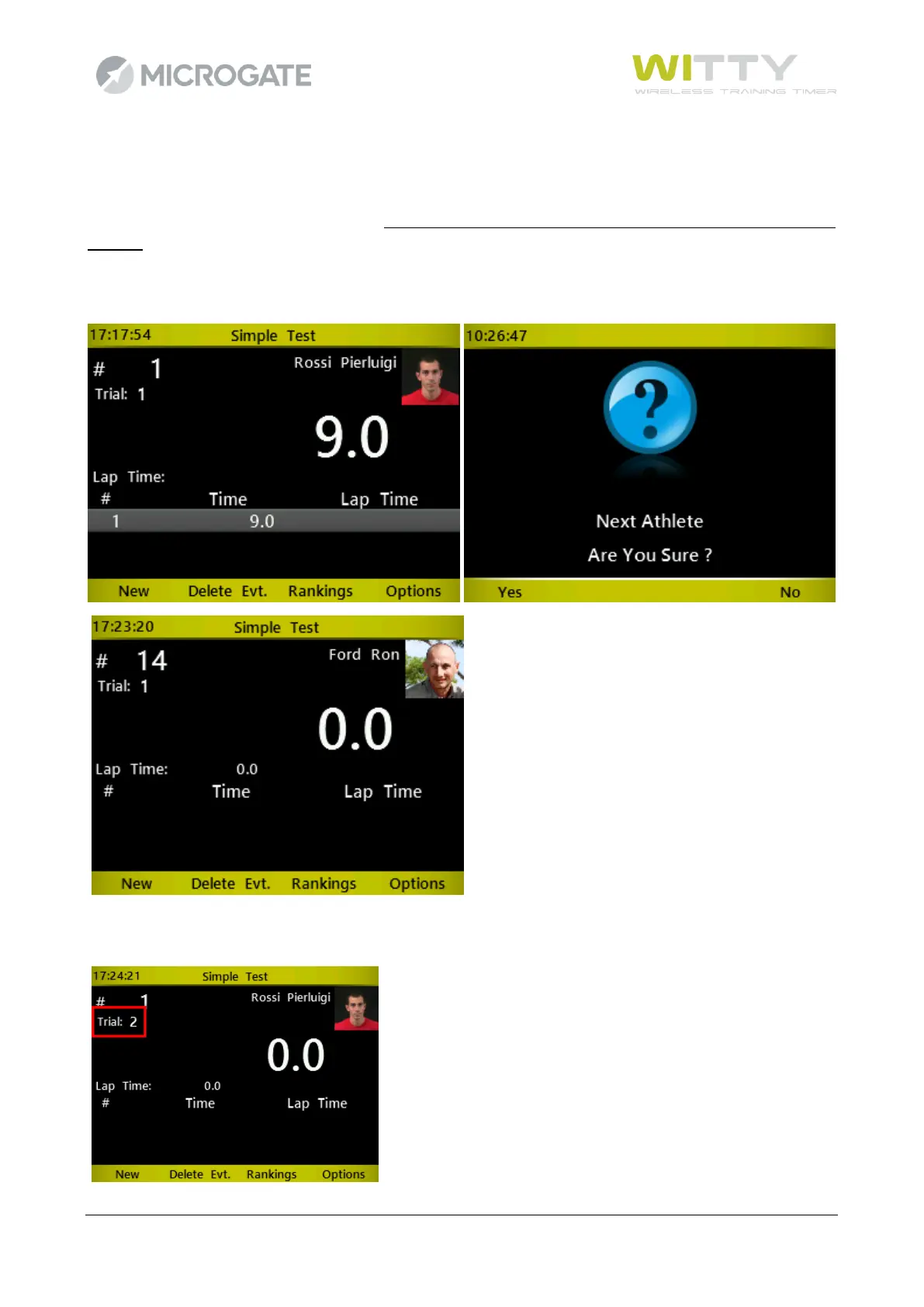 Press <F1> New and the system asks, if you want to continue with another athlete. If so, the following athlete
