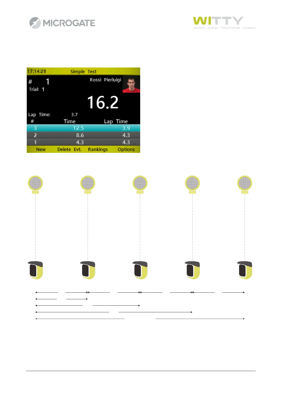 If there is more than one photocell for lap timing, the lap times are saved and displayed as a table which can