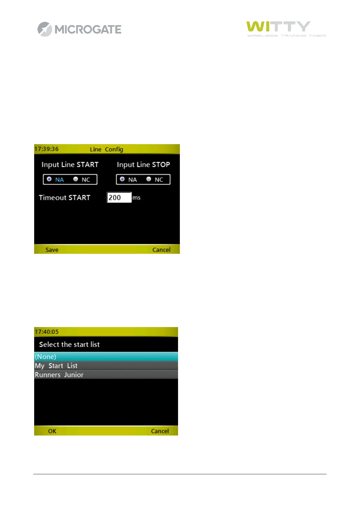 If one or more Start Lists have been created with the Witty Manager software and transferred to the timer,