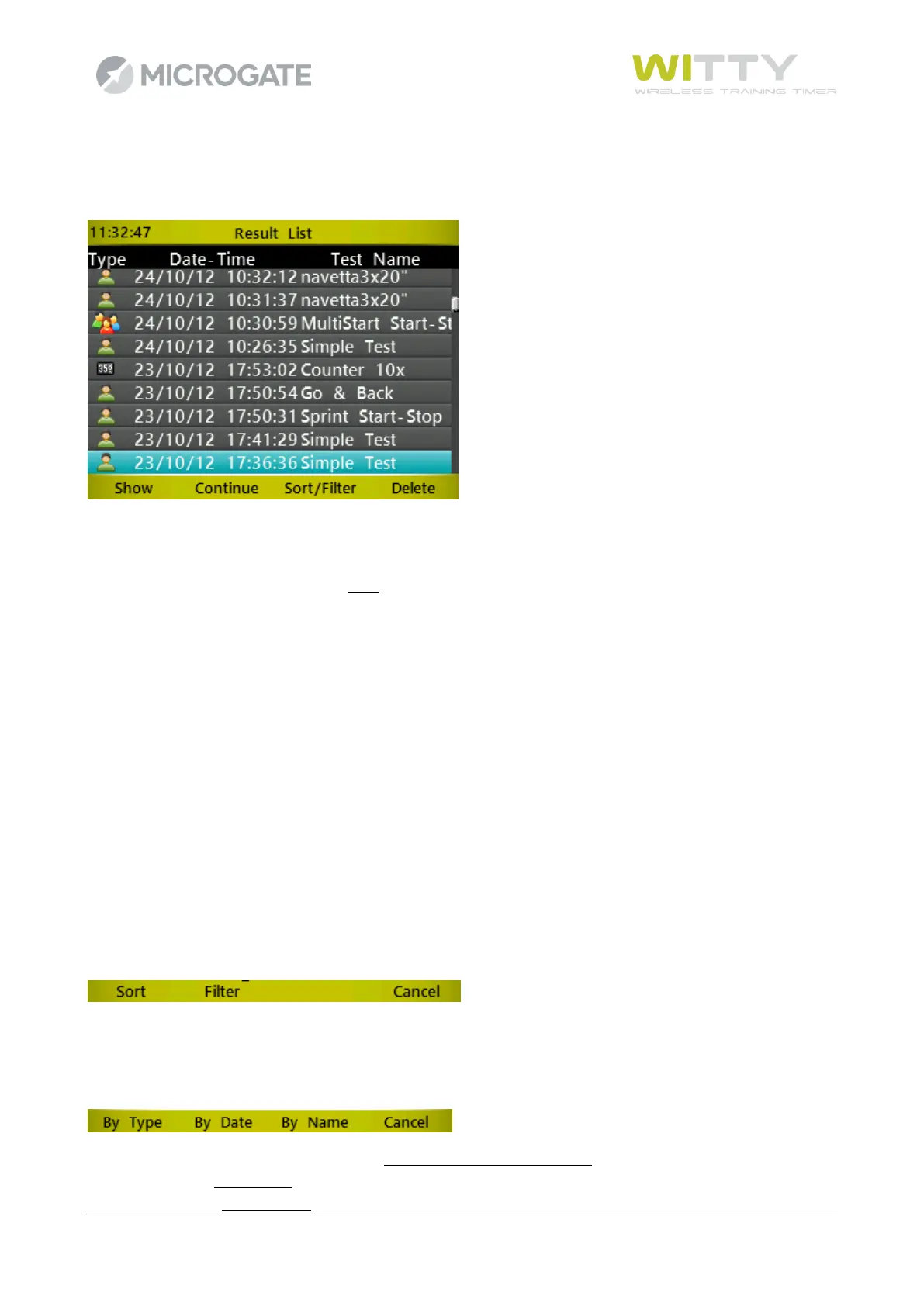 By selecting one of the three Options (<F1>By Type, <F2> By Date, <F3>By Name) the result list is sorted by