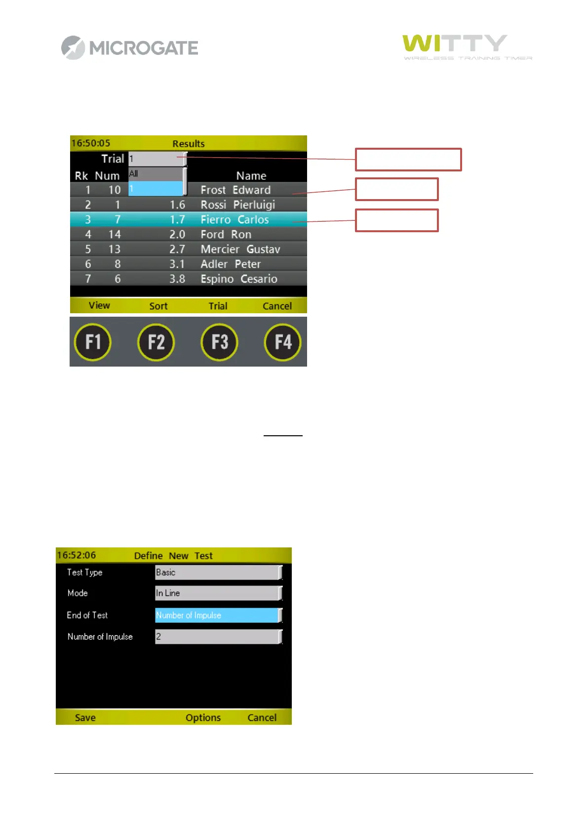 In order to open a dropdown list, press the relevant function key (in this case F3 labeled 'Test') or the <up