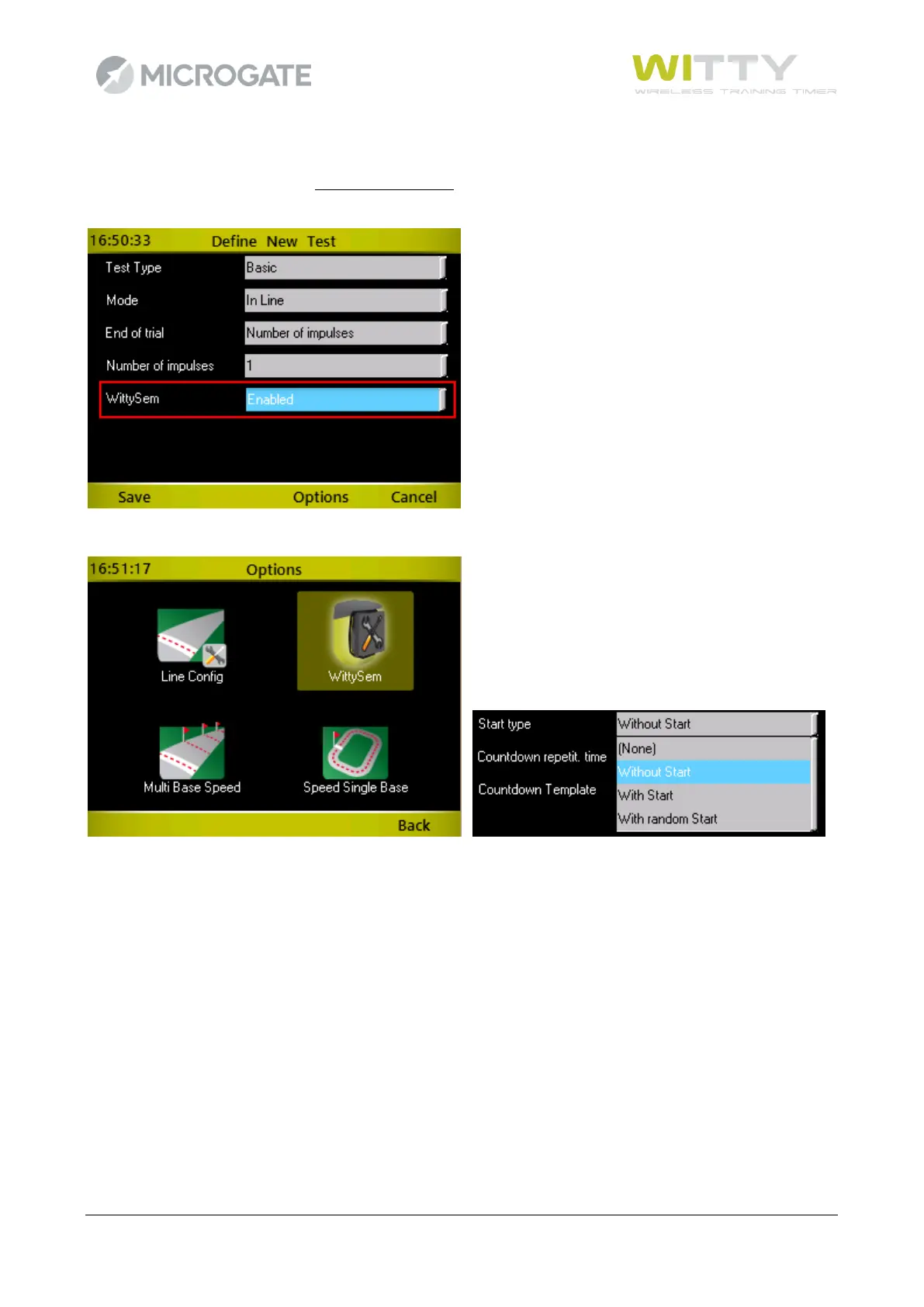 The last parameter that is found in every type of test is the possibility to use the Witty·SEM as a starting
