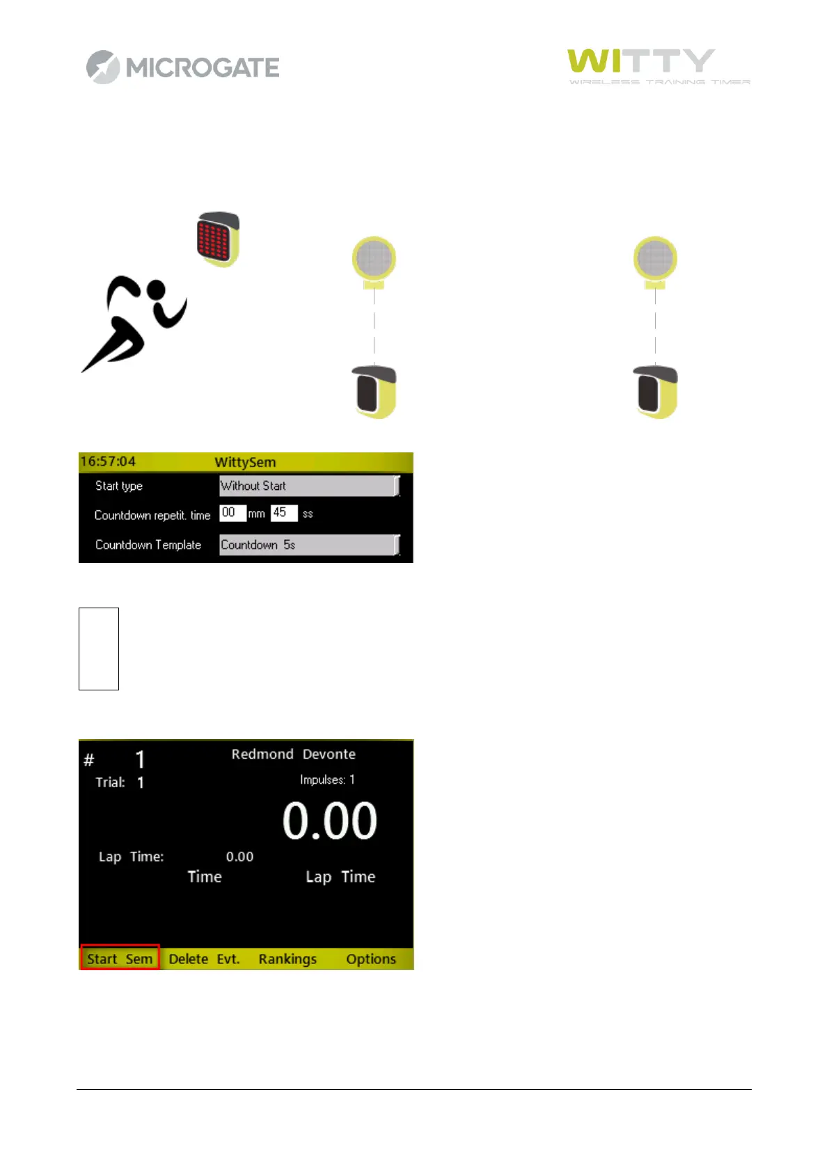 Witty·SEM carries out the selected countdown (5 sec.) and then immediately displays the green signal for 5