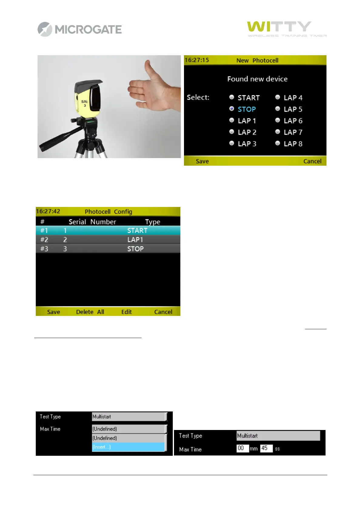 and press <F3>. Similarly to the first photocell, choose the event type and save by pressing <F1>.