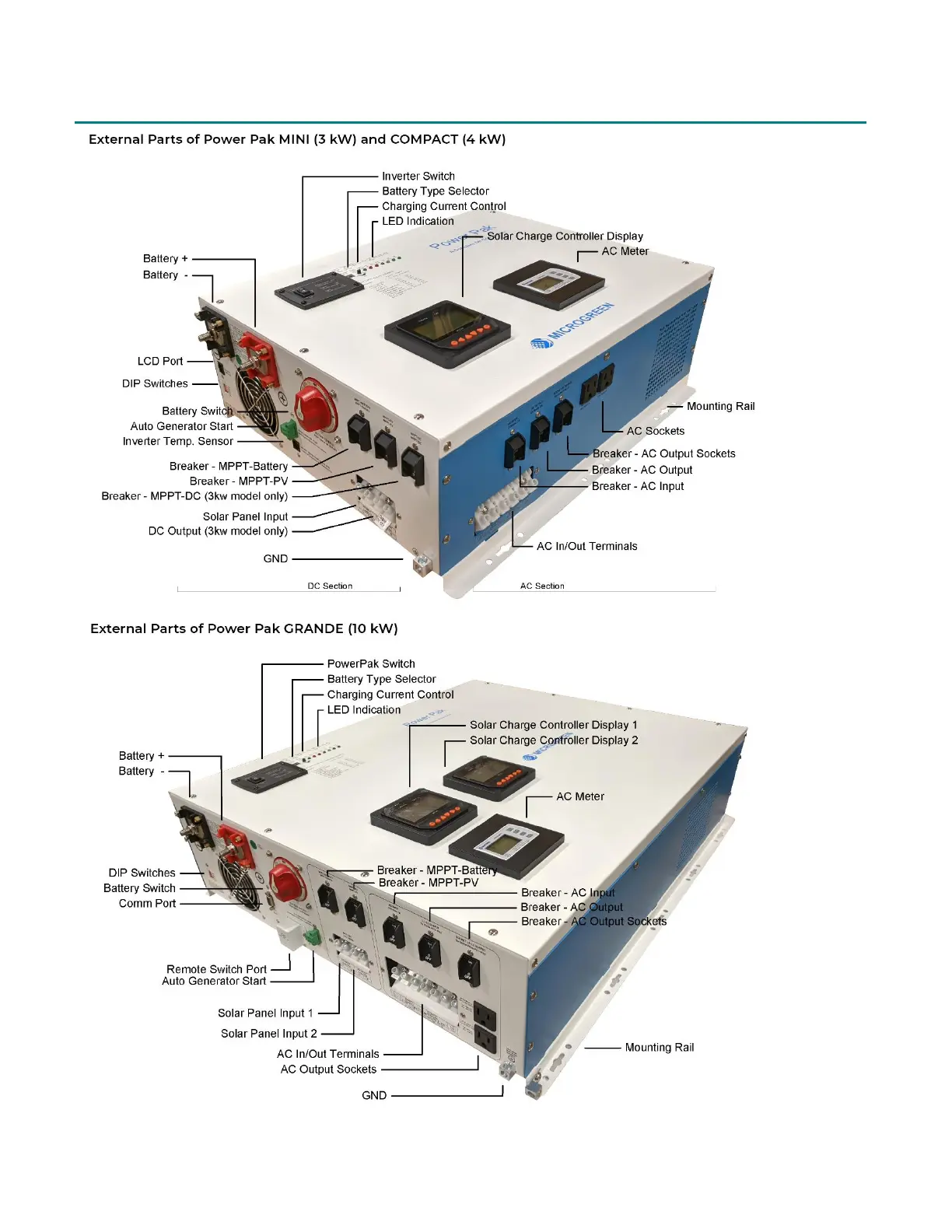 Microgreen Power Pak - External Parts of Power Pak MINI and COMPACT; External Parts of Power Pak GRANDE