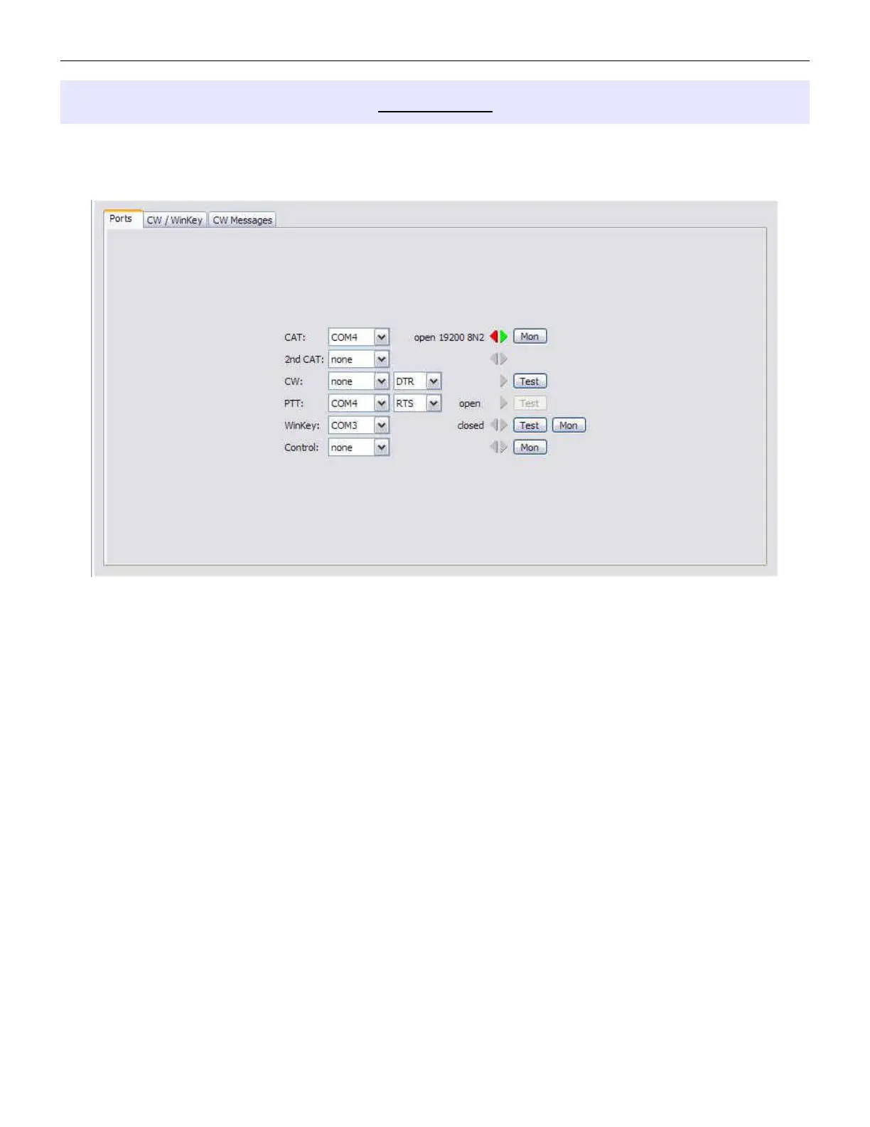 Control, CW, PTT, etc.). These assignments should correspond to settings of the application software and