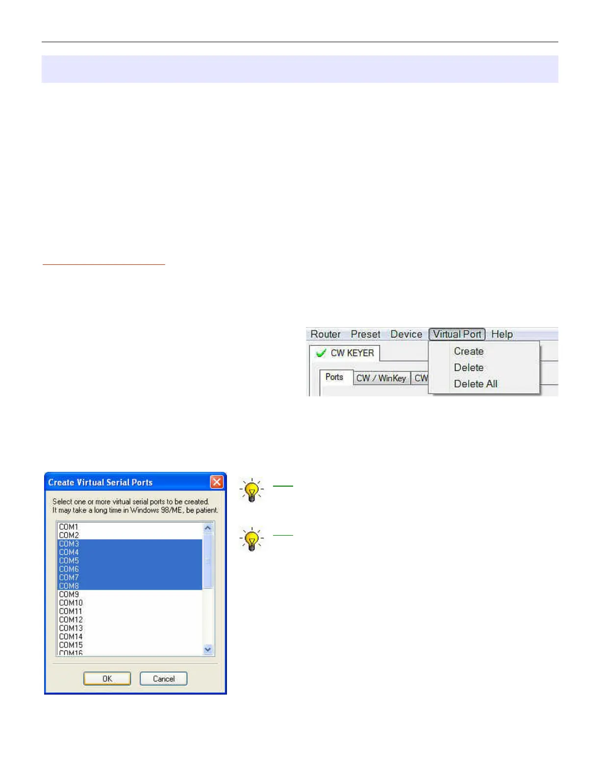 with CW Keyer just as they would work with "real" (hardware) serial ports.