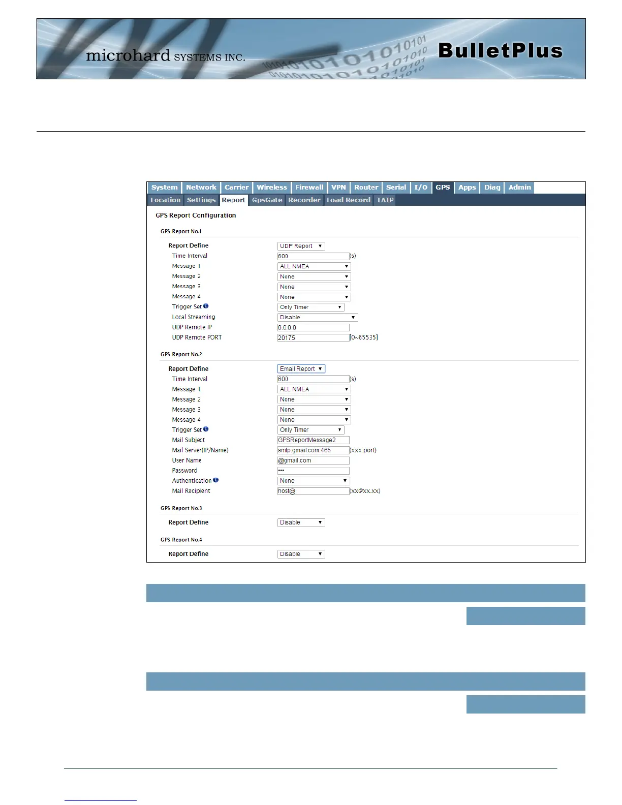 Enable UDP and/or Email or disable GPS Reporting. Up to 4 reports can