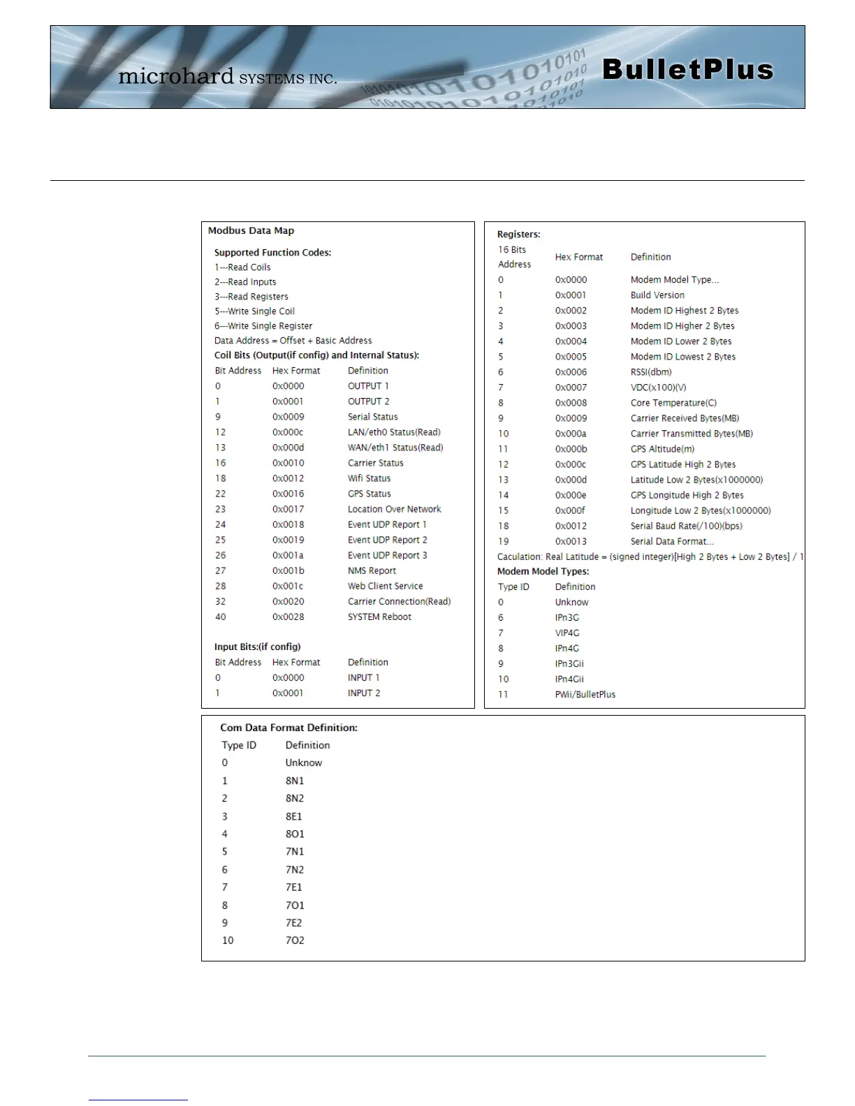 Microhard Systems BulletPlus - Modbus Data Map