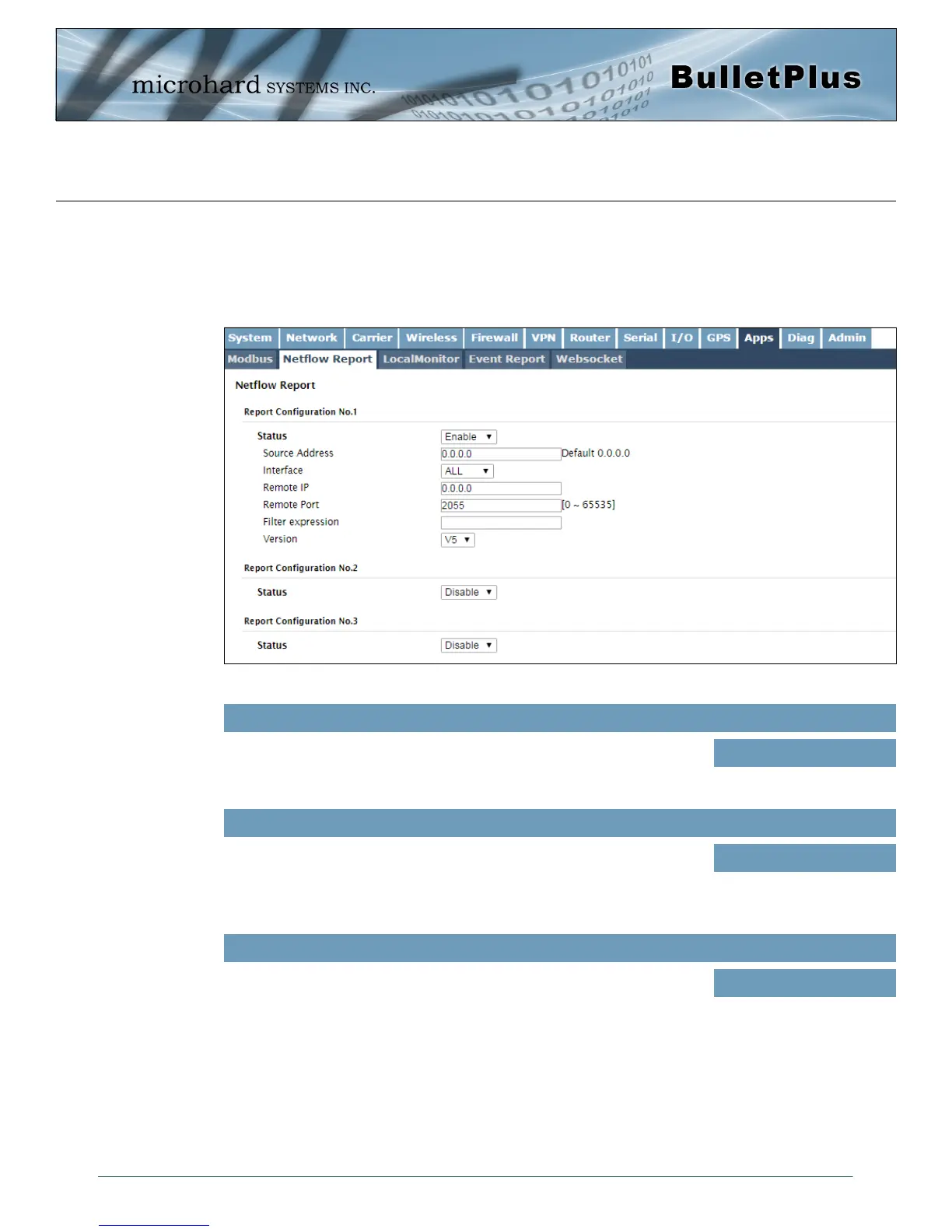 The BulletPlus can be configured to send Netflow reports to up to 3 remote systems. Netflow is a tool that