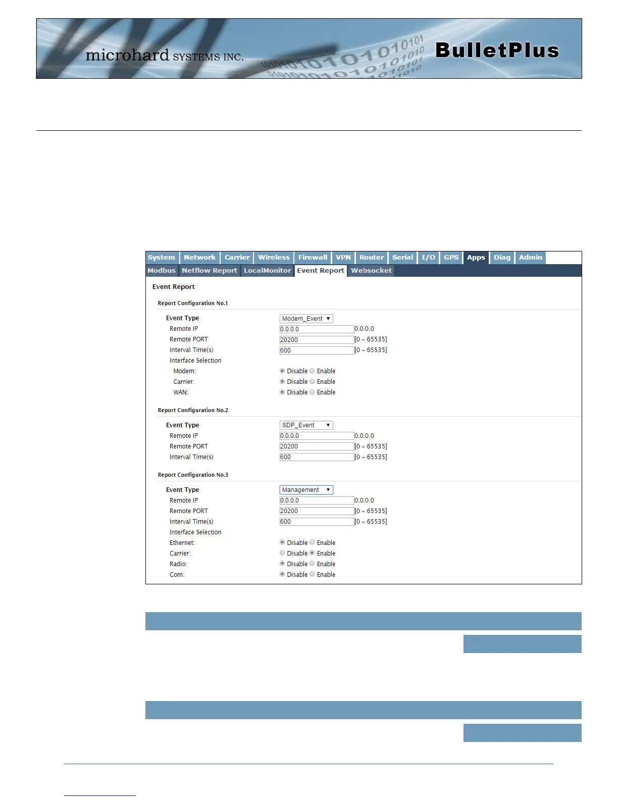 Event Reporting allows the BulletPlus to send periodic updates via UDP packets. These packets are