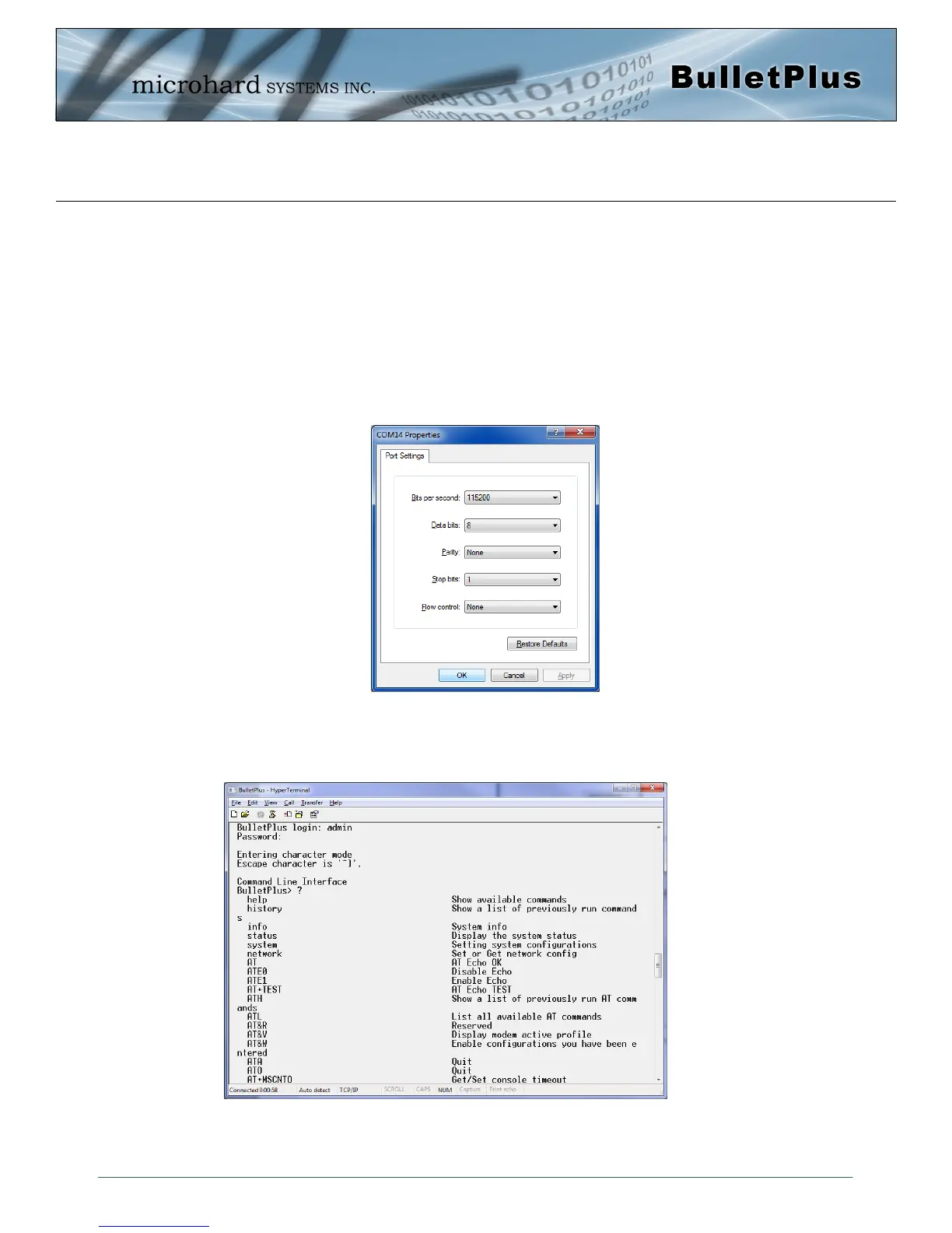 (Hyperterminal, Tera Term, ProComm, Putty etc) can then be used to communicate with the BulletPlus.