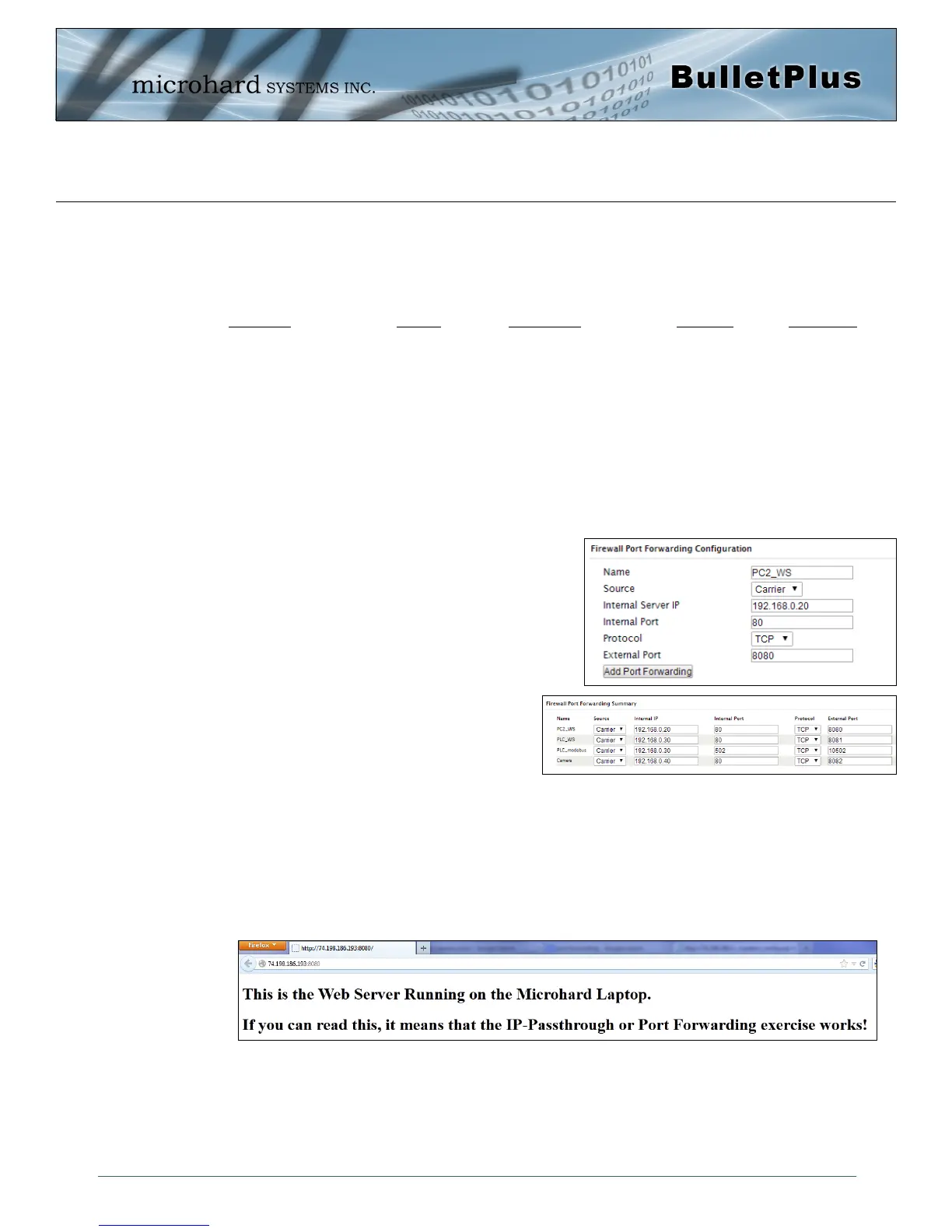 addresses, and the different external ports mapped by the BulletPlus (80, 8080, 8081, 8082), will send the data to the