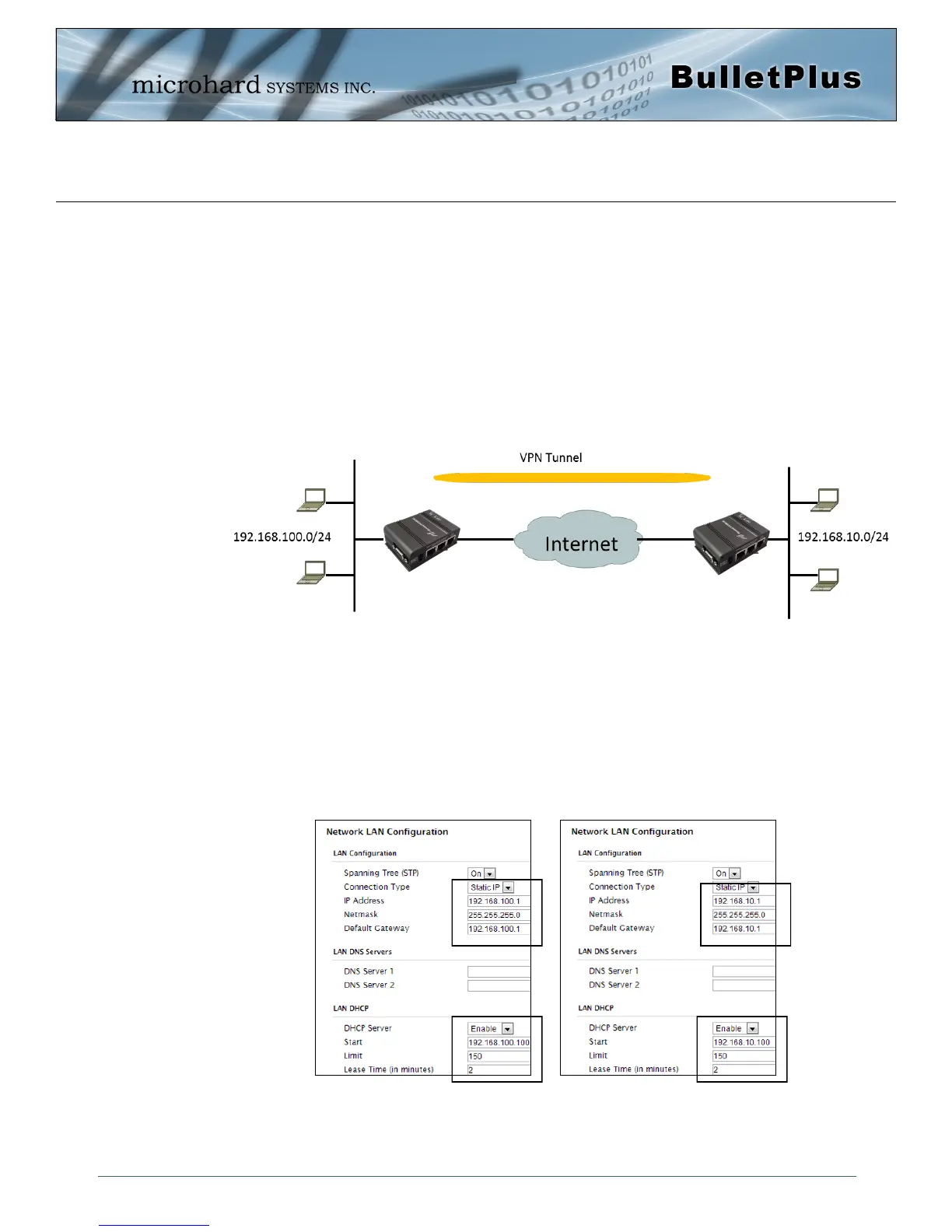 require a static IP address. VPN tunnels can also be created using the BulletPlus to existing VPN capable