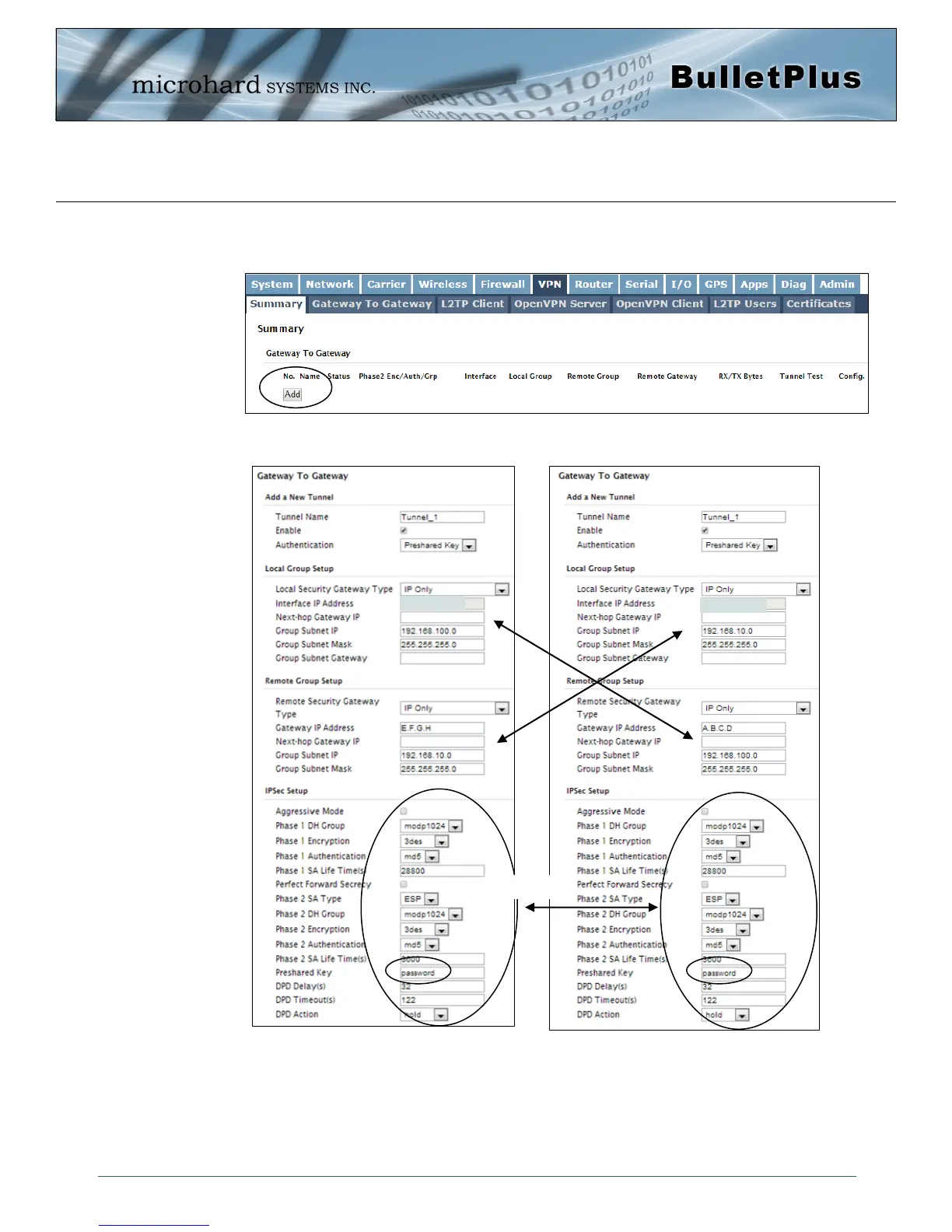 Add a VPN Gateway to Gateway tunnel on each BulletPlus.
