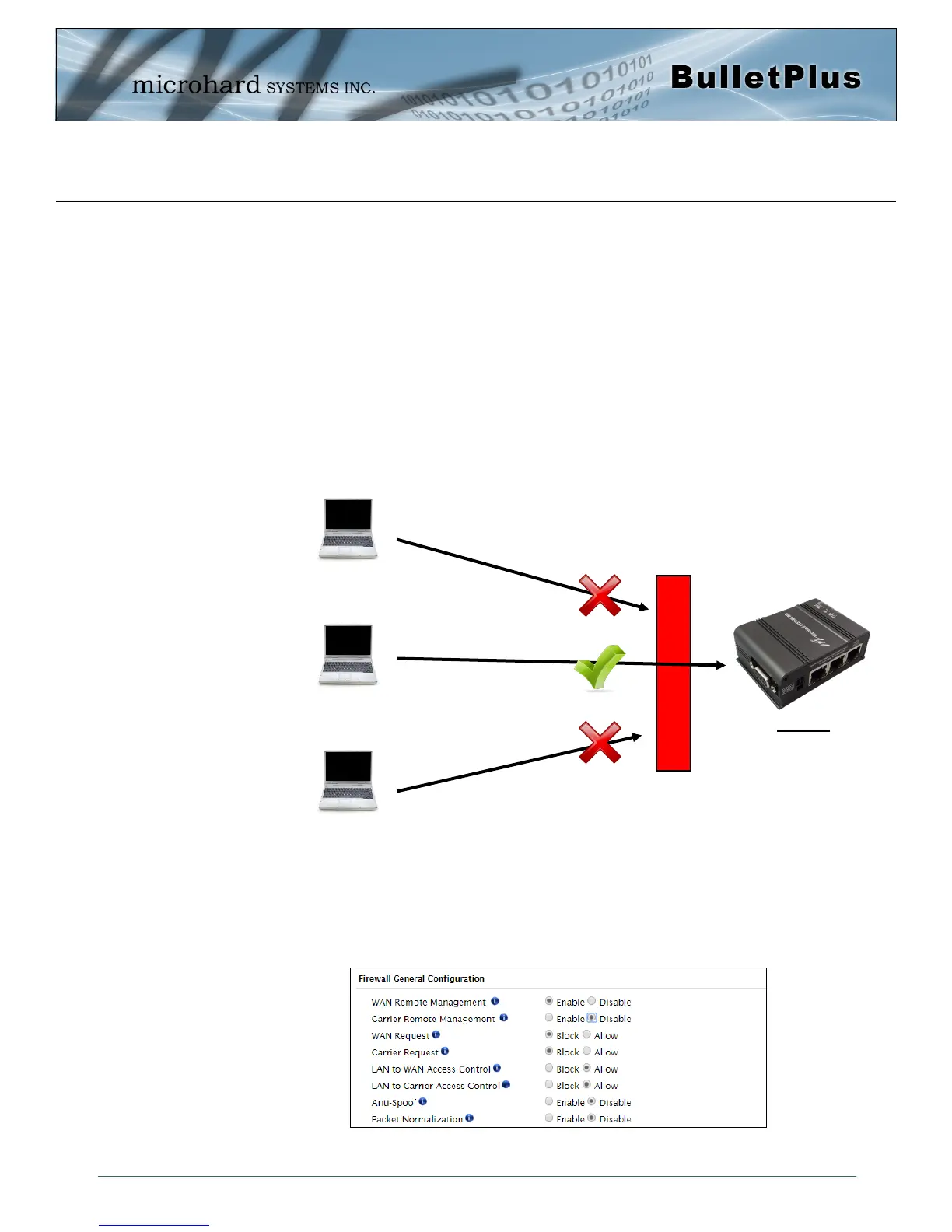 deployment. The firewall features of the BulletPlus allow a user to limit access to the BulletPlus and the