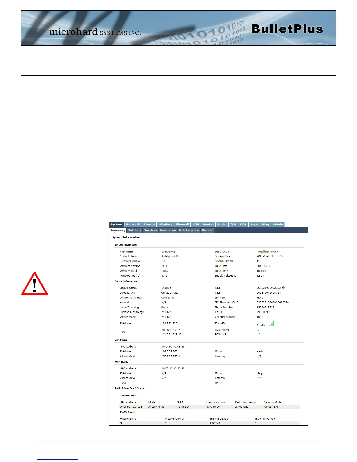 all the functions of the BulletPlus in a single display. This information includes System Status, Carrier