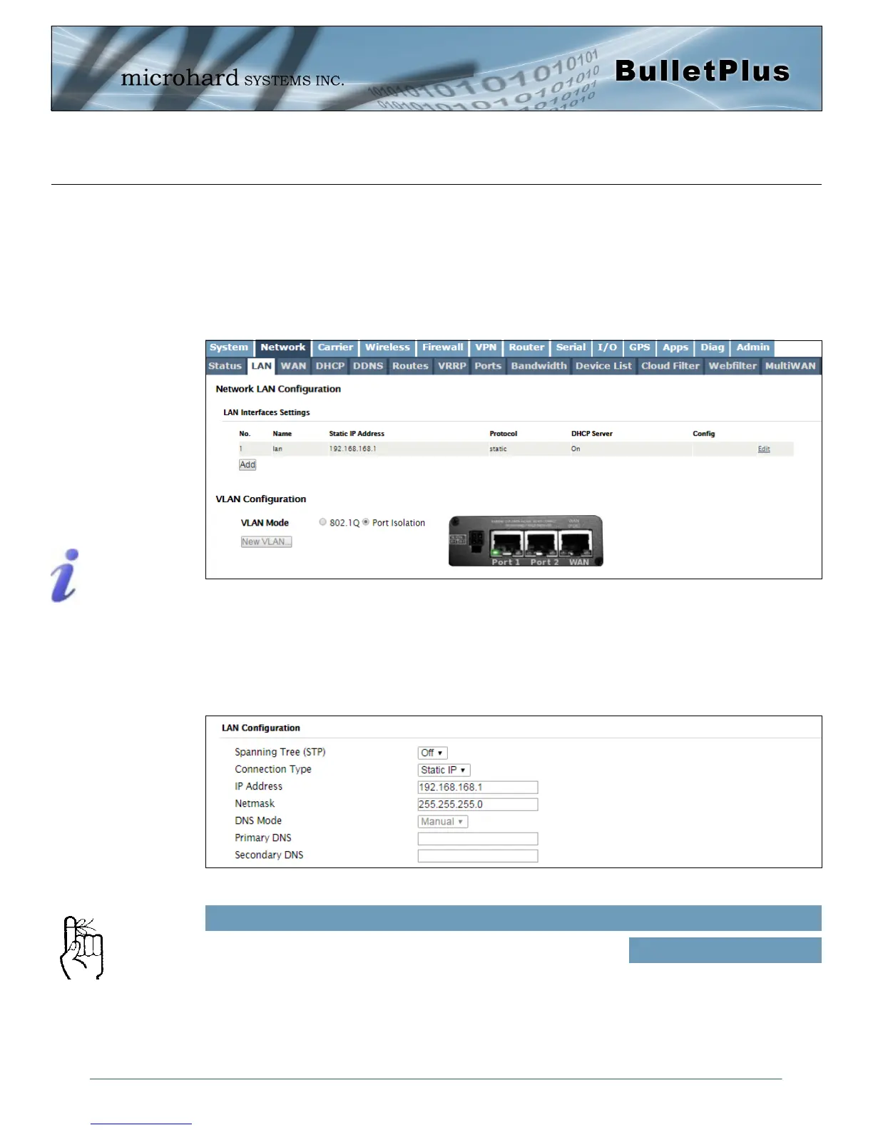 The BulletPlus features 2x LAN ports that can be used for connection of devices on a local network. The