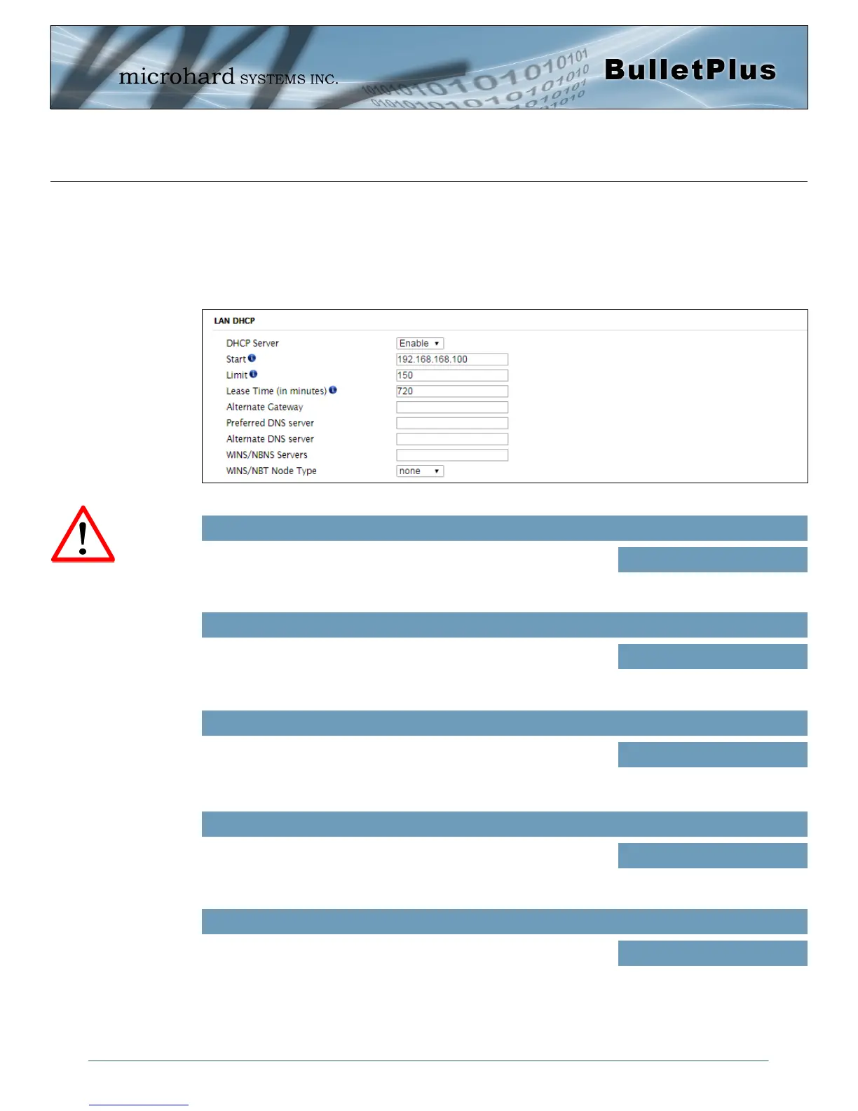 will be assigned an IP by the BulletPlus. The LAN DHCP service is available for each interface, and is