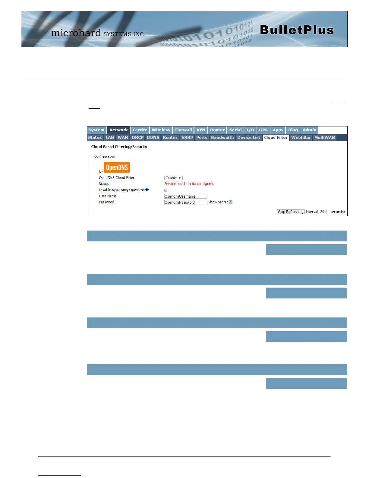 The BulletPlus provides Cloud based content filtering and security using the third-party service by Open