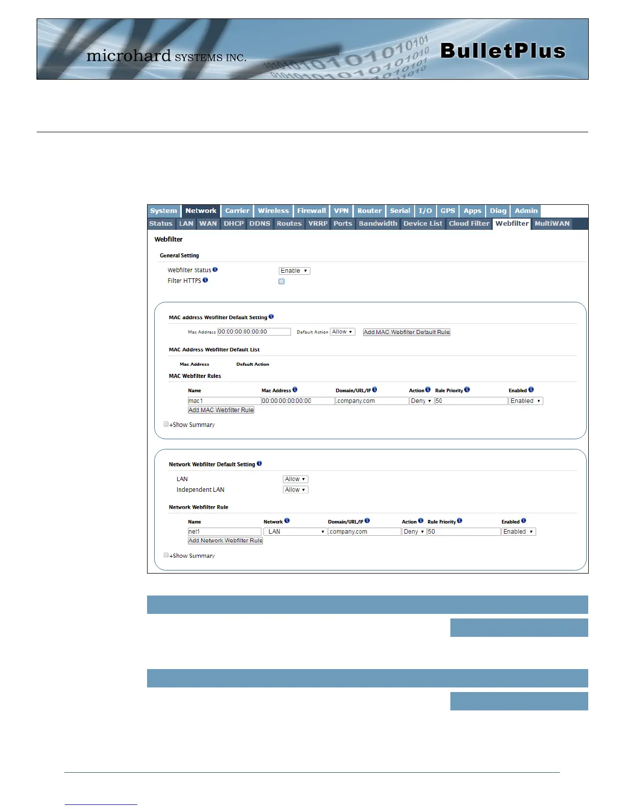 Enable or Disable the Webfilter of the BulletPlus.