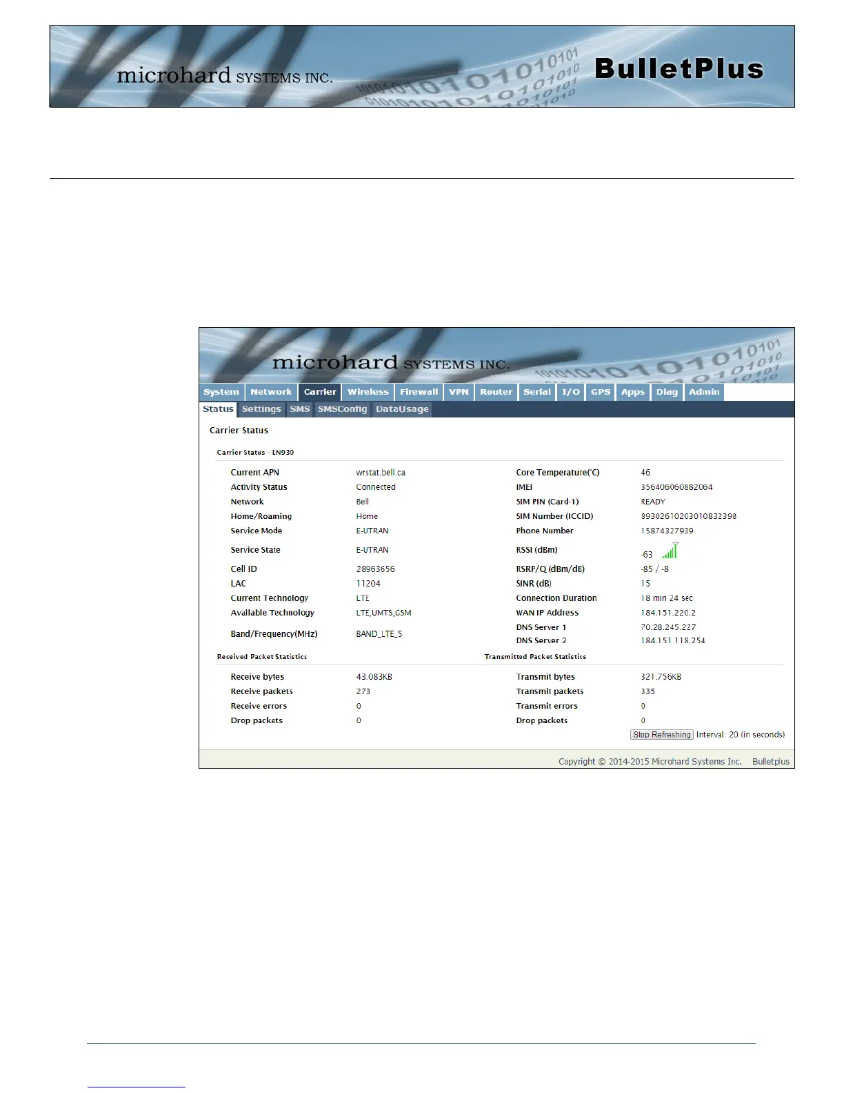 Image 4-3-1: Carrier > Status