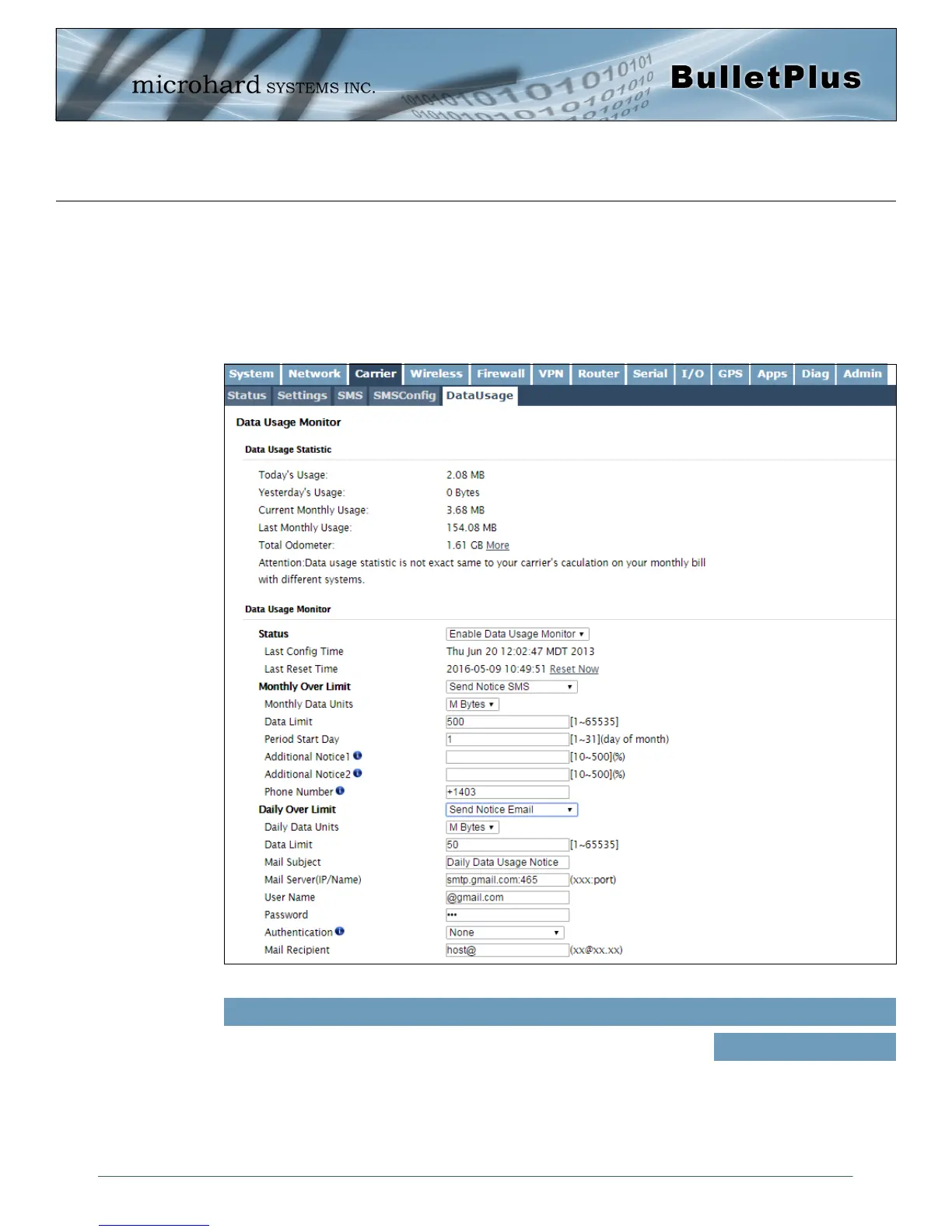 If enabled the BulletPlus will track the amount of cellular data consumed. If