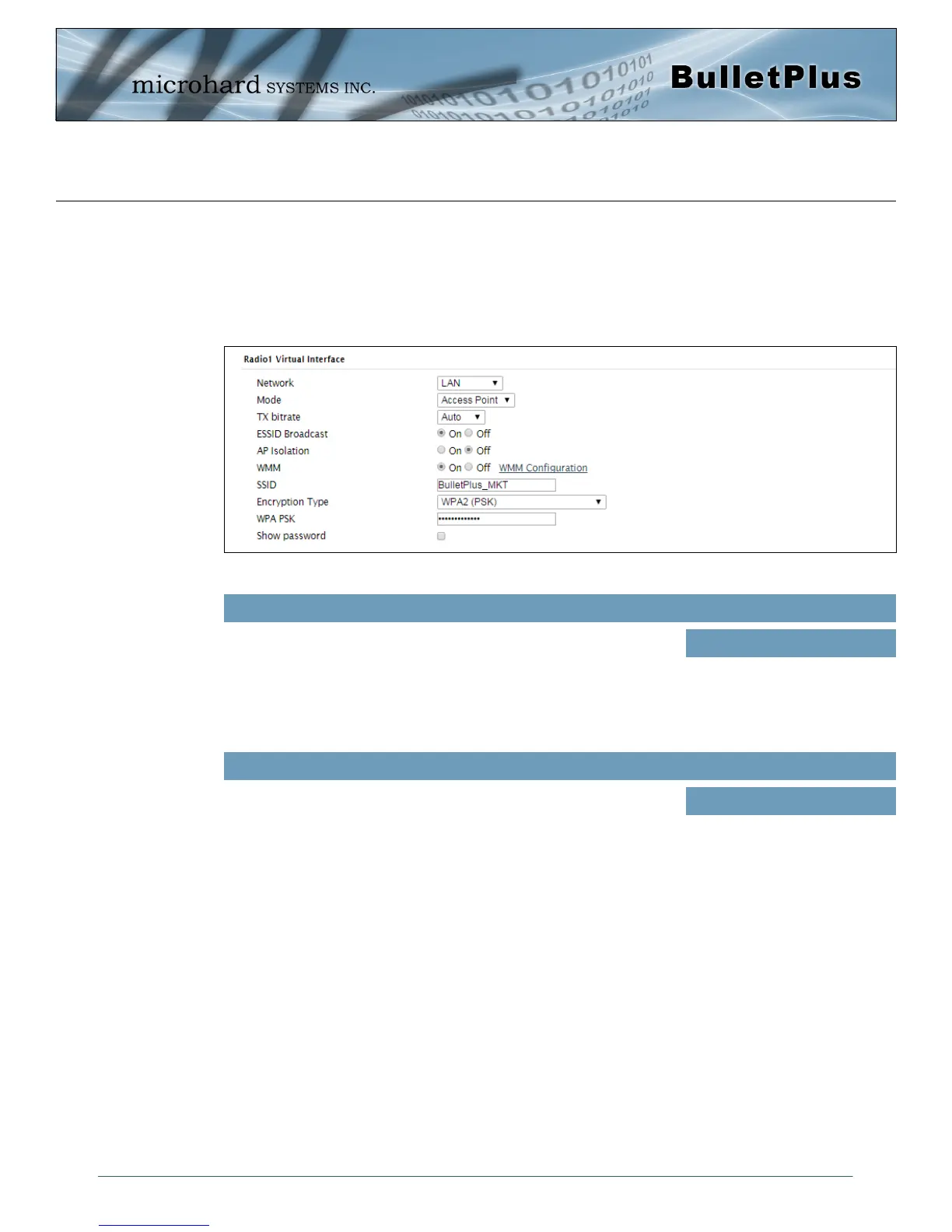 BulletPlus can support multiple virtual interfaces. These interfaces provide different SSID’s for different