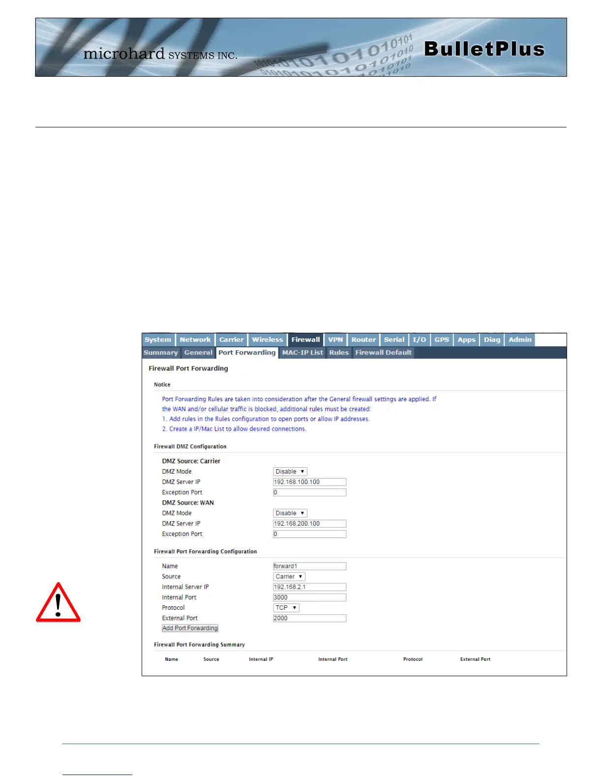 or IP Lists must be set up to allow the port forwarding traffic to pass through the firewall.