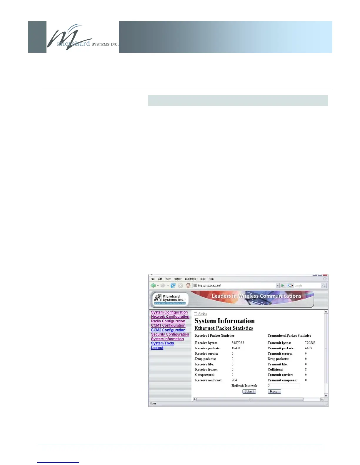 Image 6AM: System Information Menu, Ethernet Packet Statistics