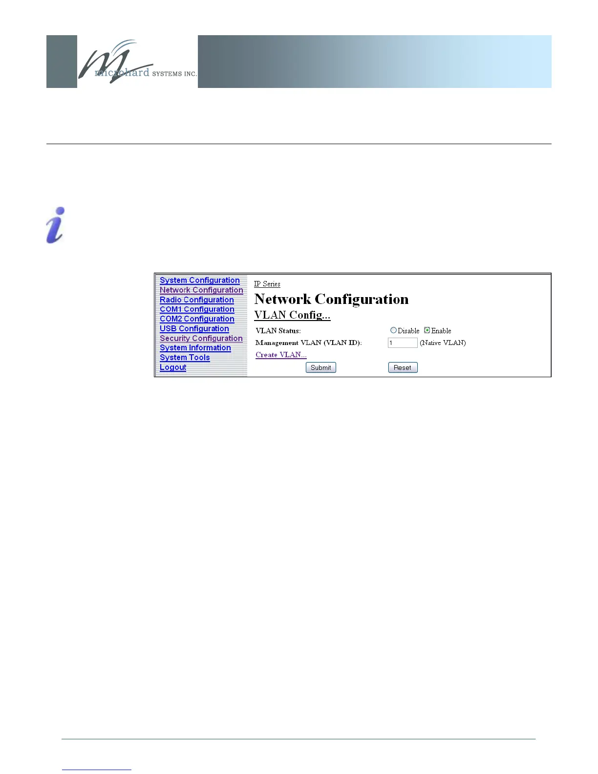 The IP Series implementation of VLAN (Virtual LAN) is currently only supported when the
