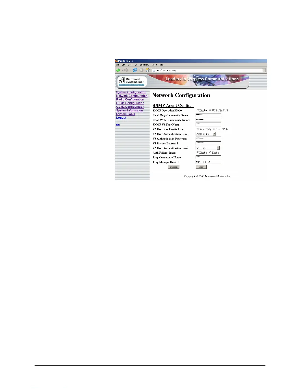 SNMP Operation Mode: SNMP agent can be disabled or enabled. If