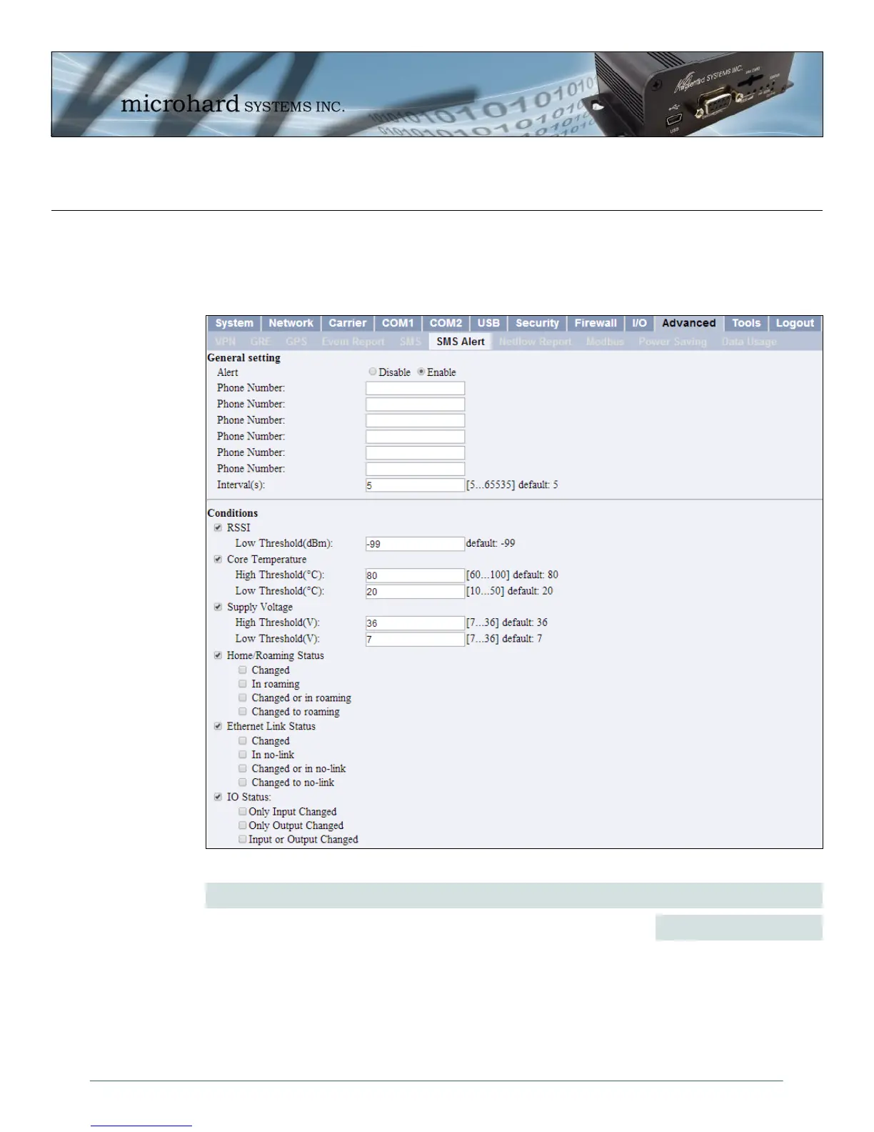 SMS Alerts can be setup in the IPn3G to report conditions that may affect the integrity of the